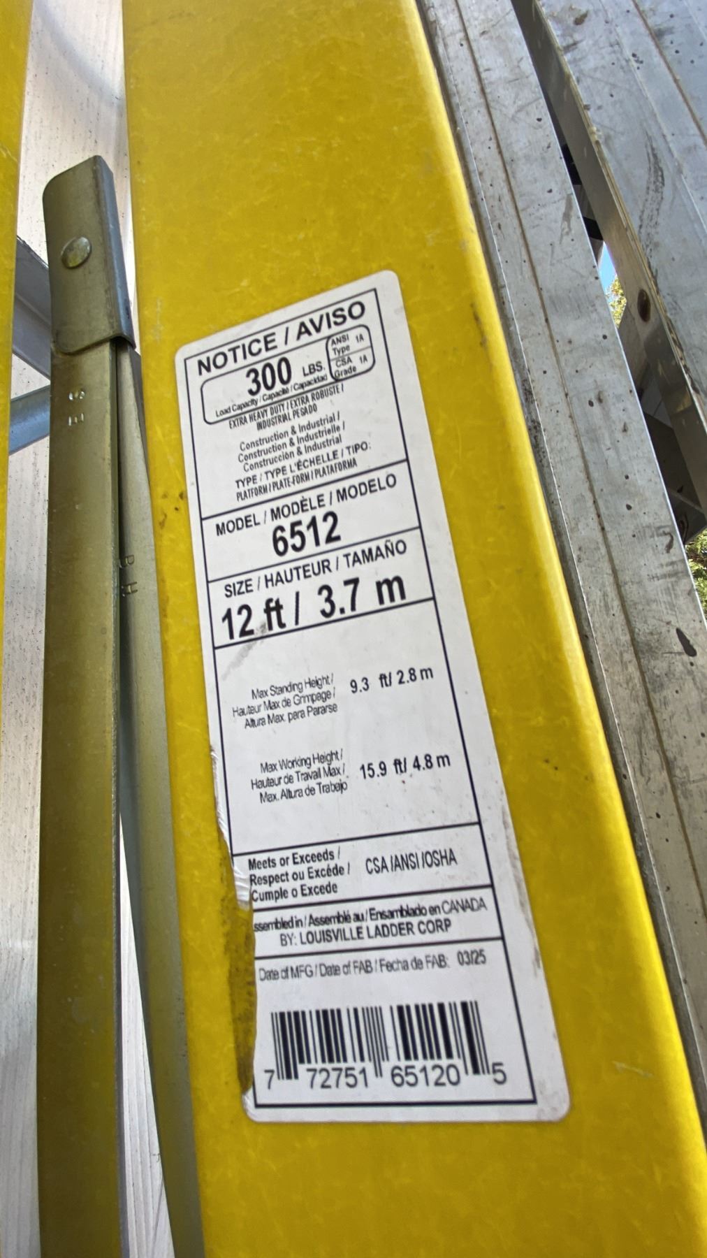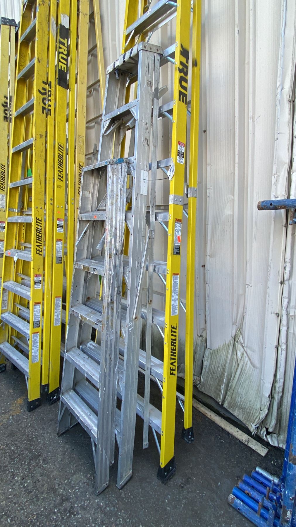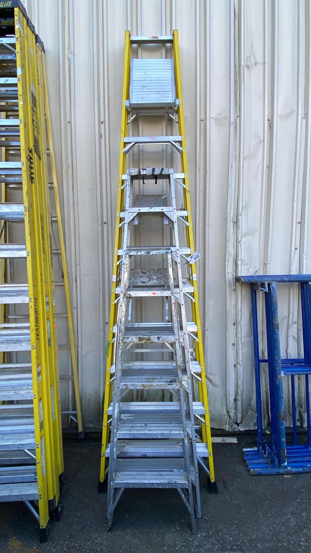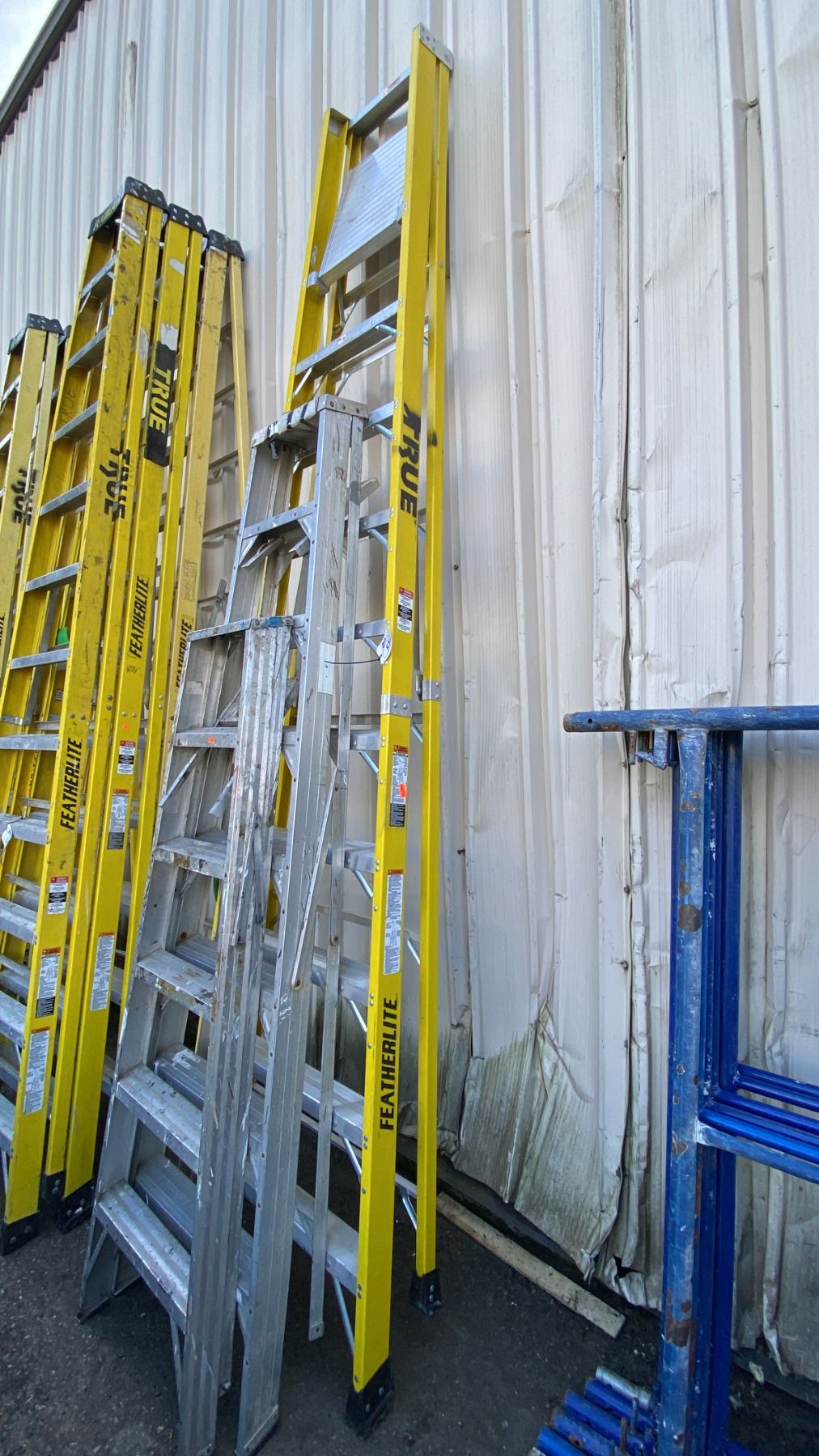 3 LADDERS- 12' YELLOW FEATHERLITE, 8' & 6' ALUMINUM
