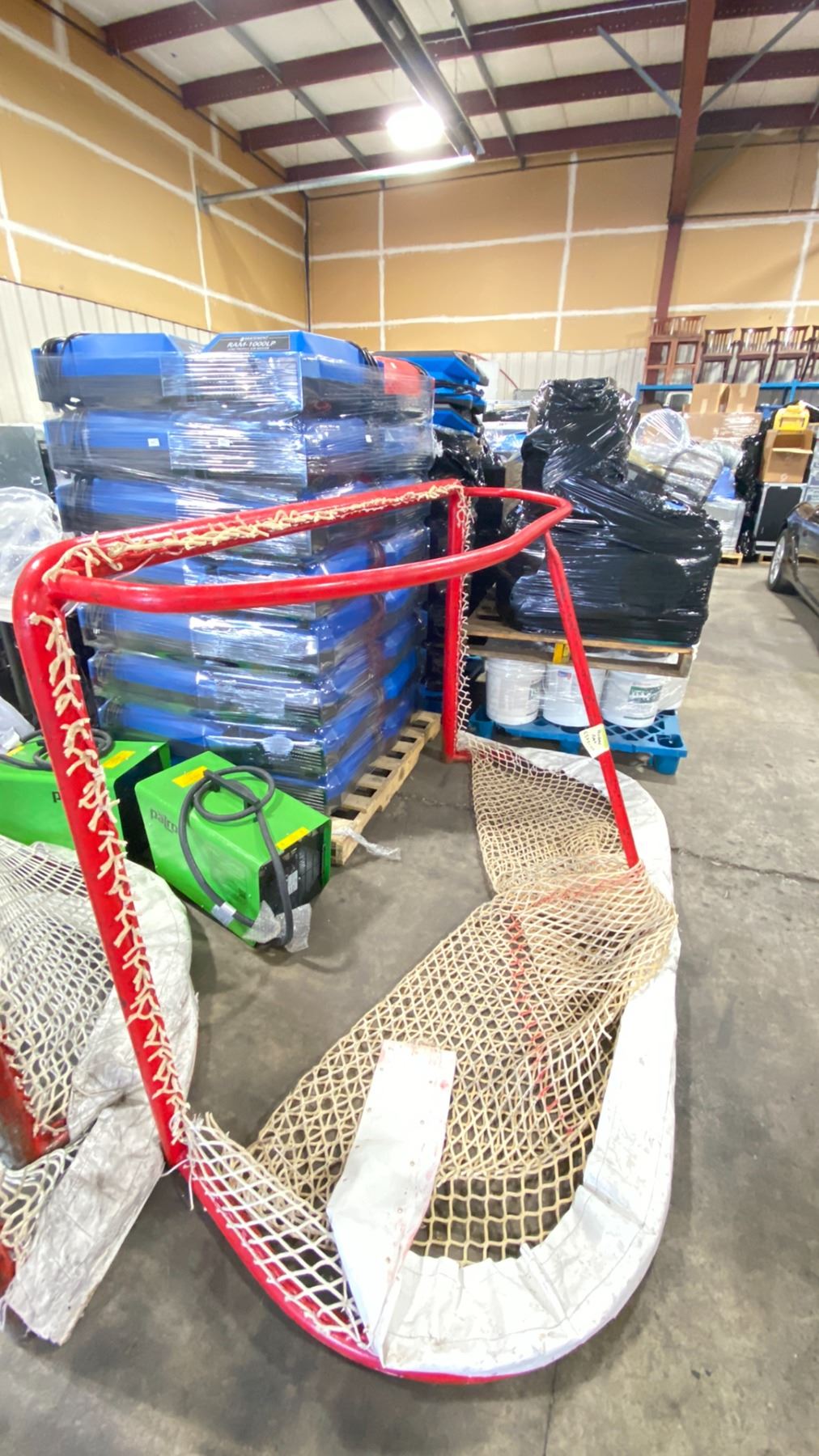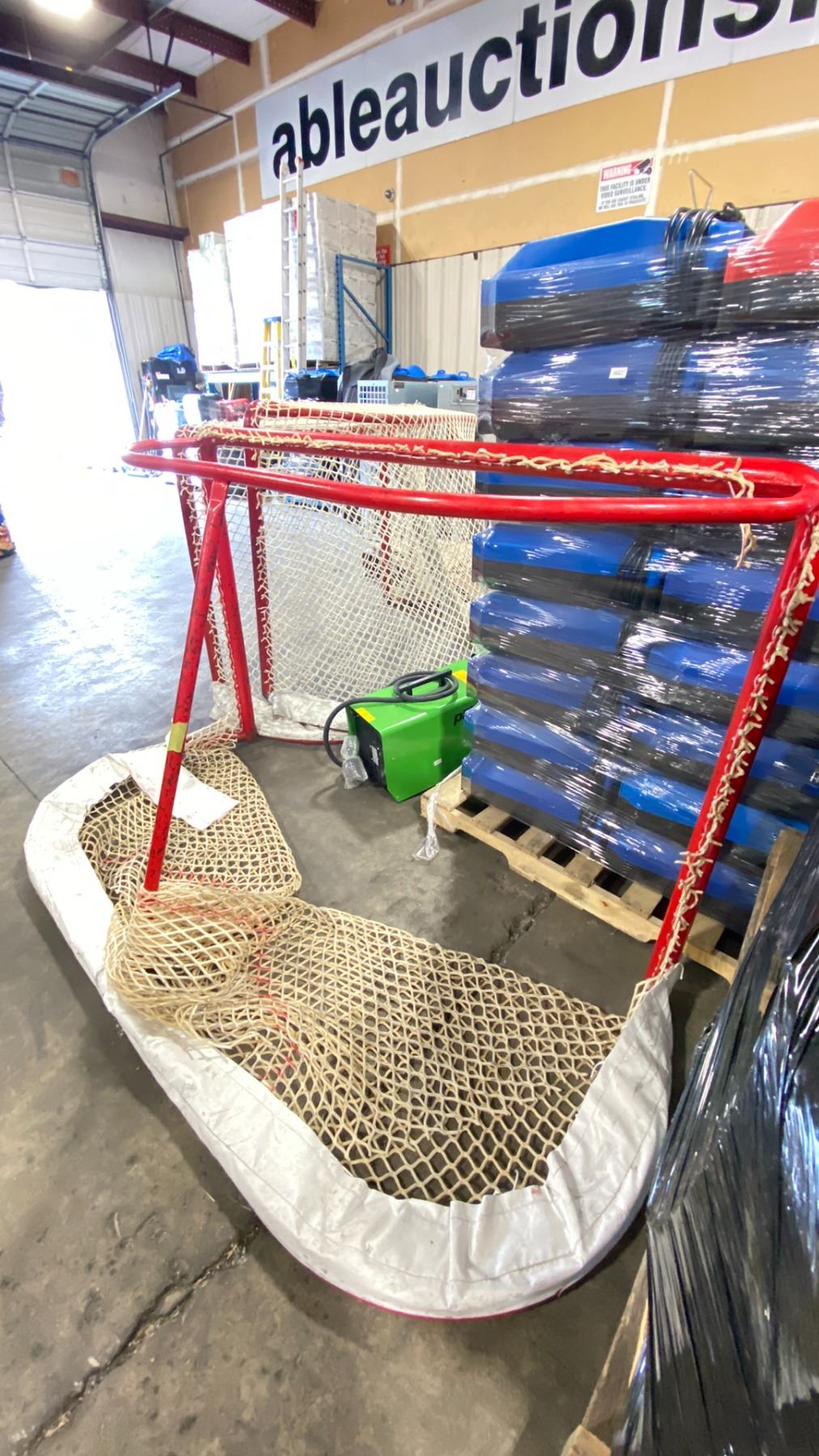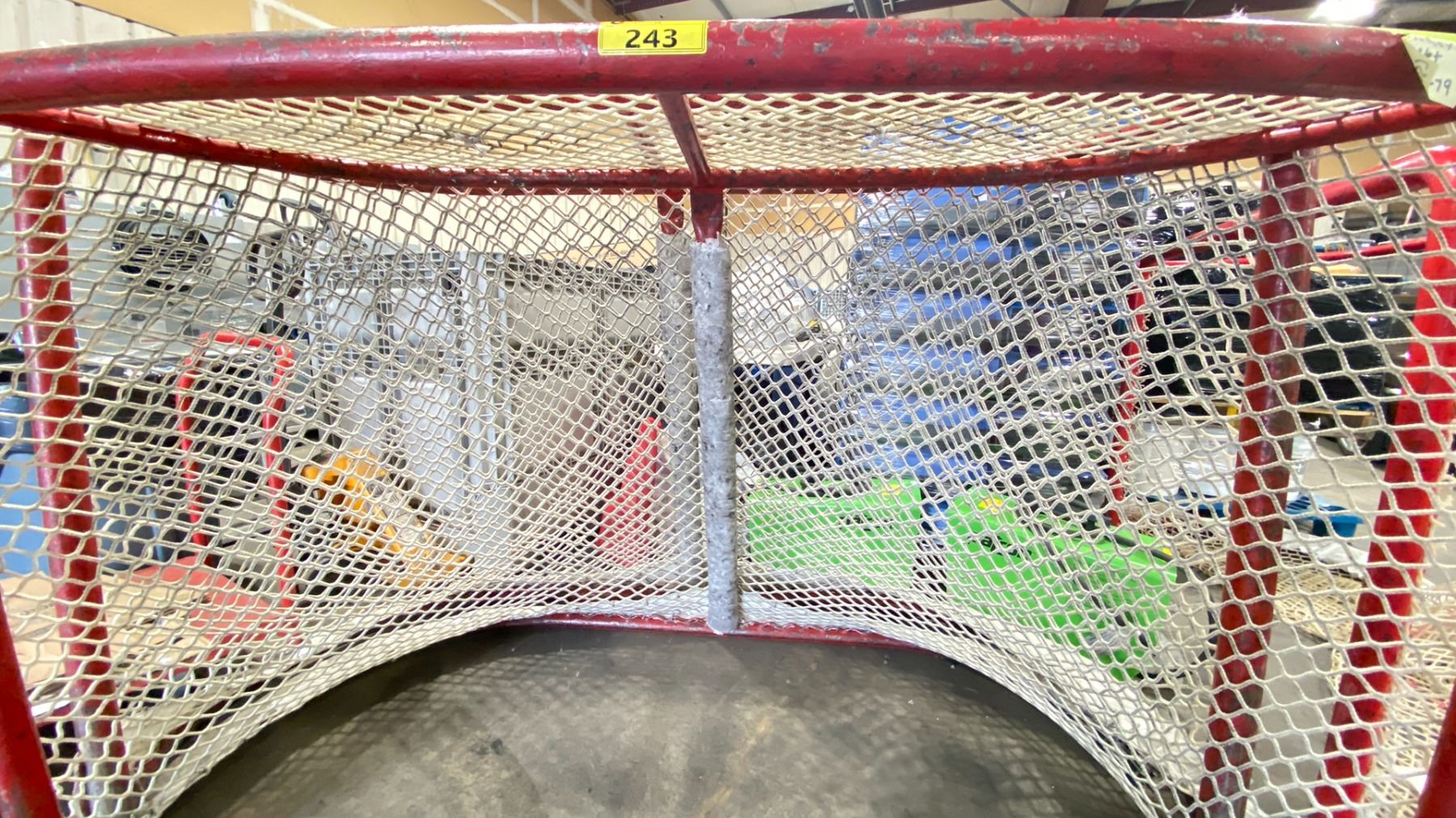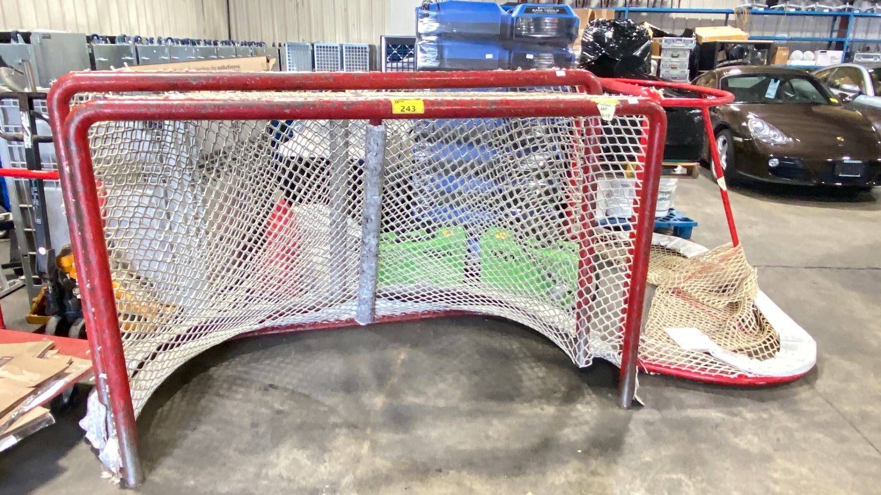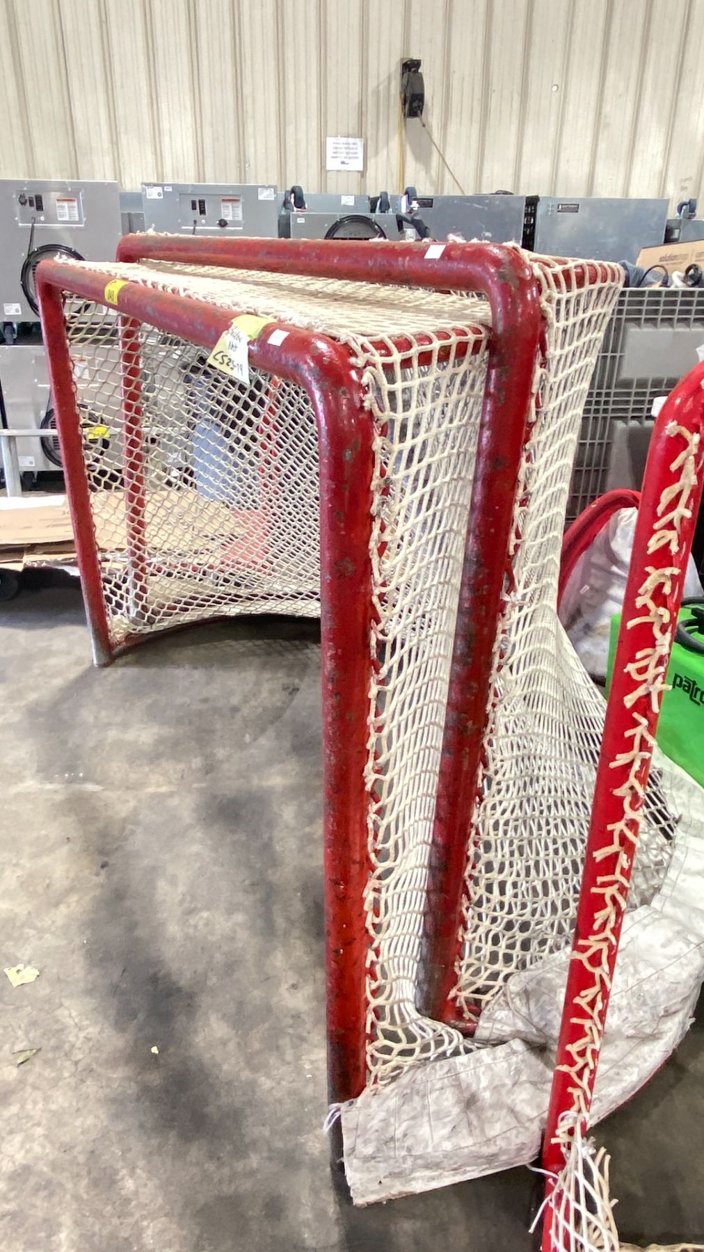3 LARGE RED METAL INDUSTRIAL REGULATION HOCKEY NETS