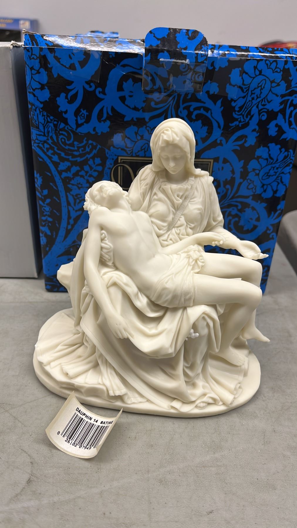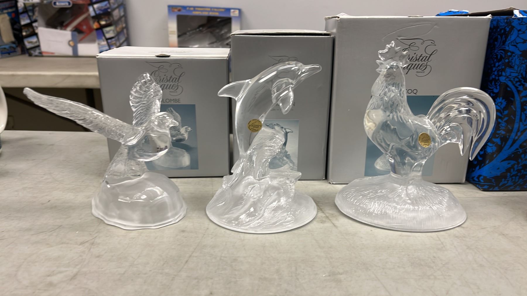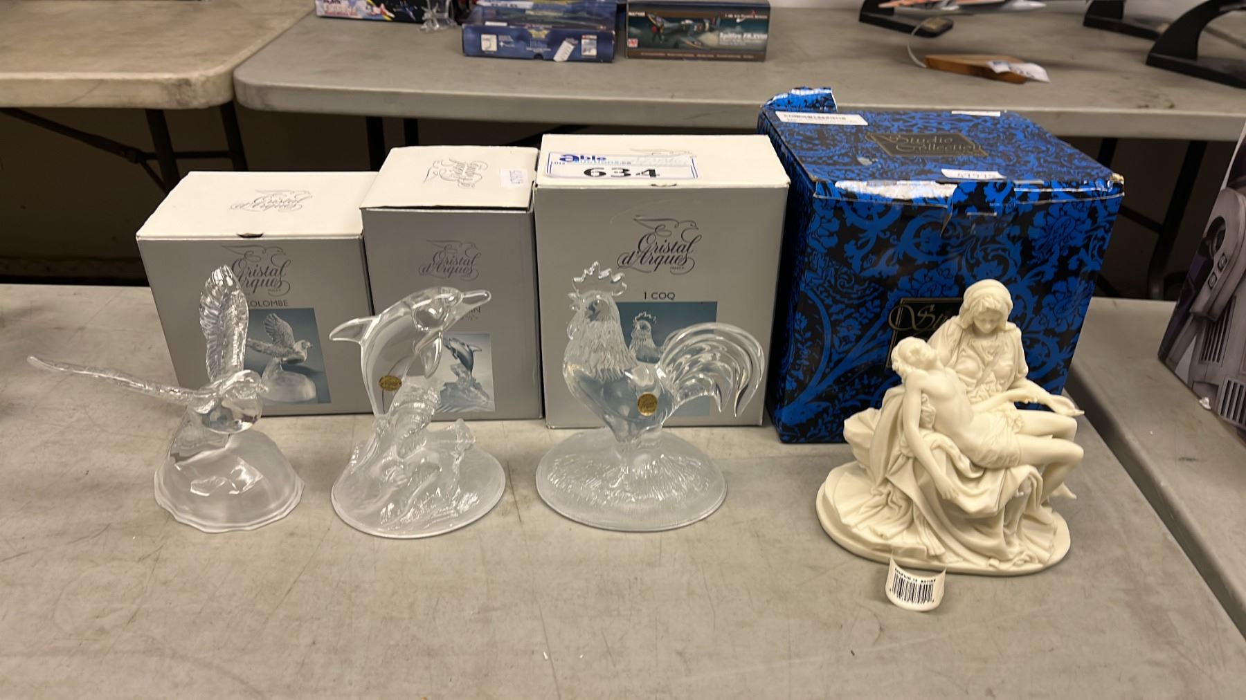 (3) LEAD CRYSTAL ANIMAL SCULPTURES & STATUE OF MICHELANGELO'S "PIETA": ALL WITH ORIGINAL BOXES