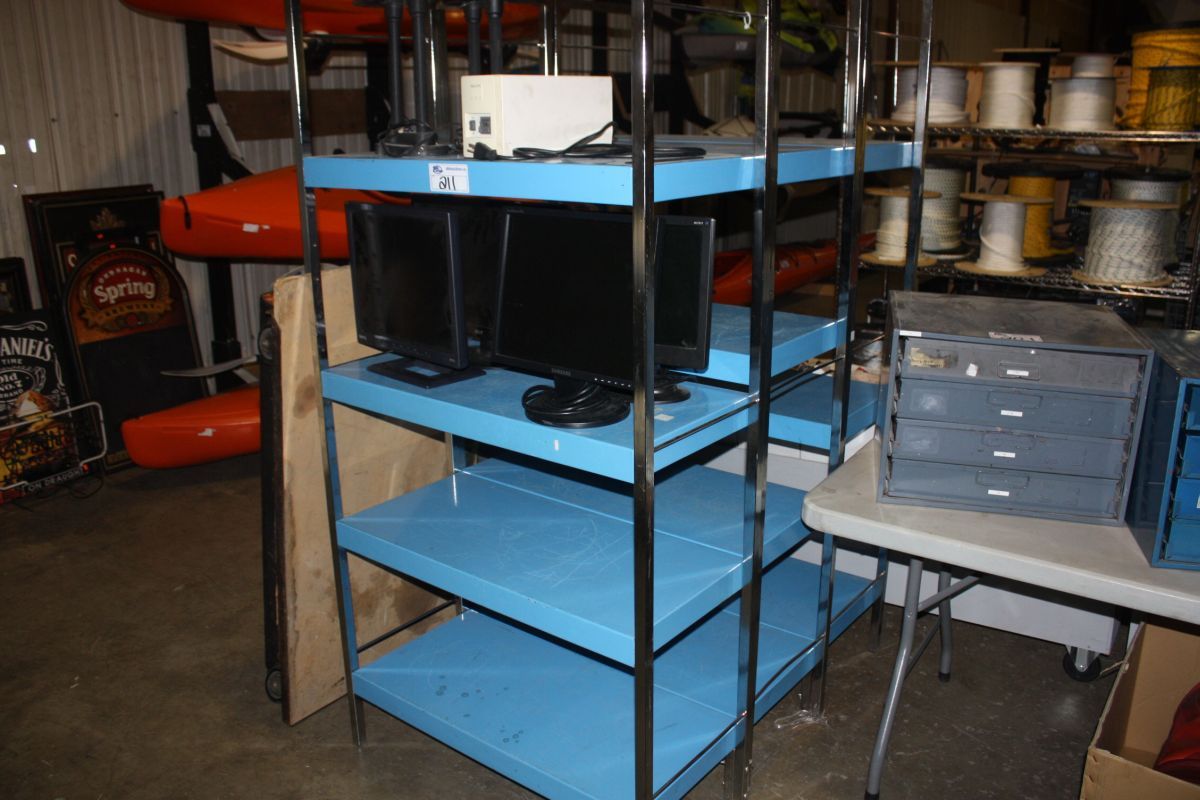 3 METAL MARINE SHELVES AND COMPUTER GEAR