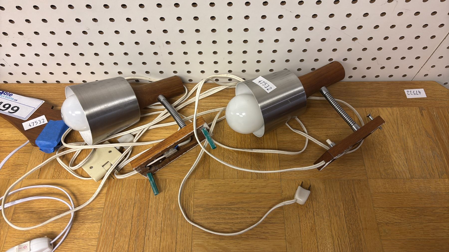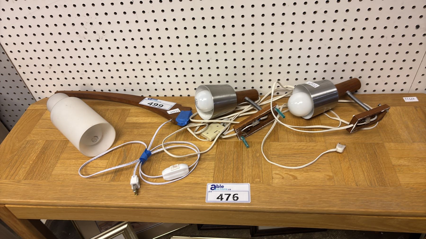 (3) MID CENTURY DANISH MODERN TEAK WALL MOUNT LAMPS