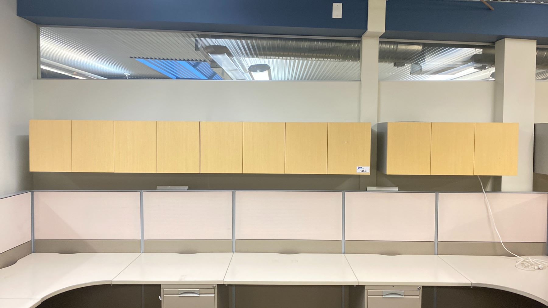 3 NATURAL FINISH WALL MOUNT OFFICE CABINETS APPROX. (2) 53" X 16" X 14" (1) 40" X 16" X 14"