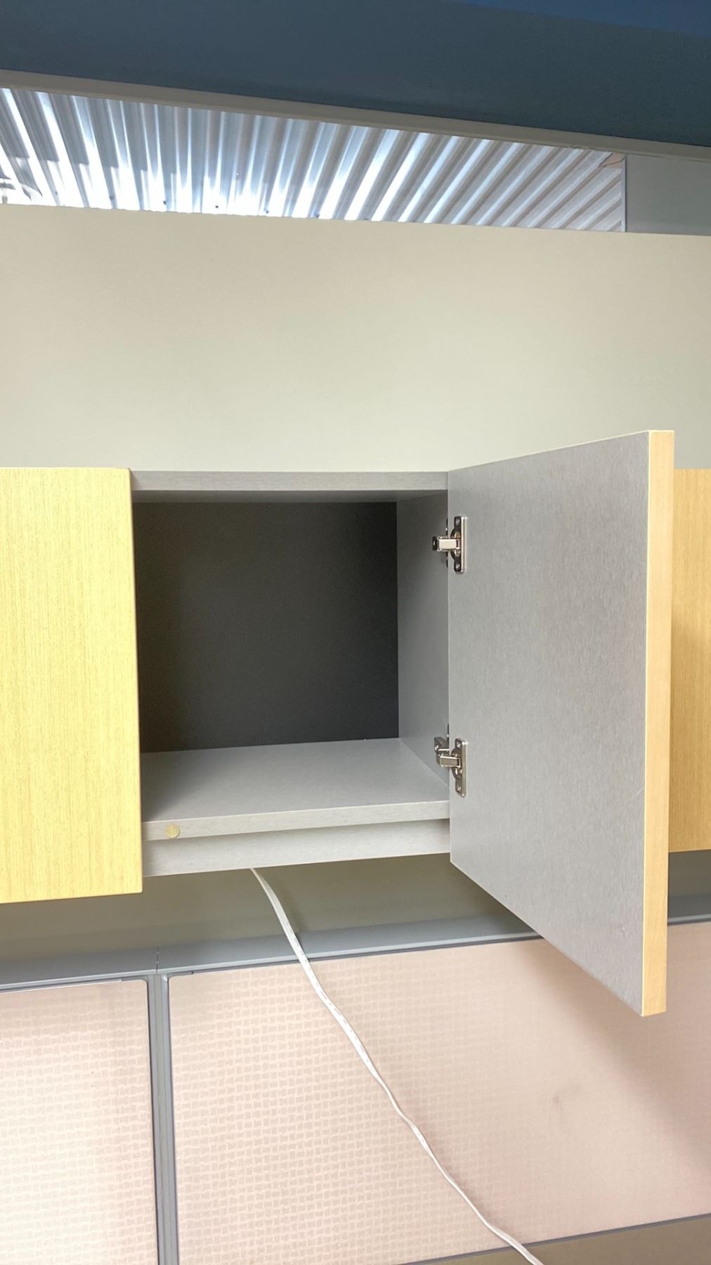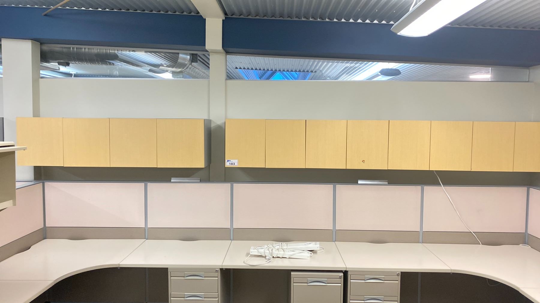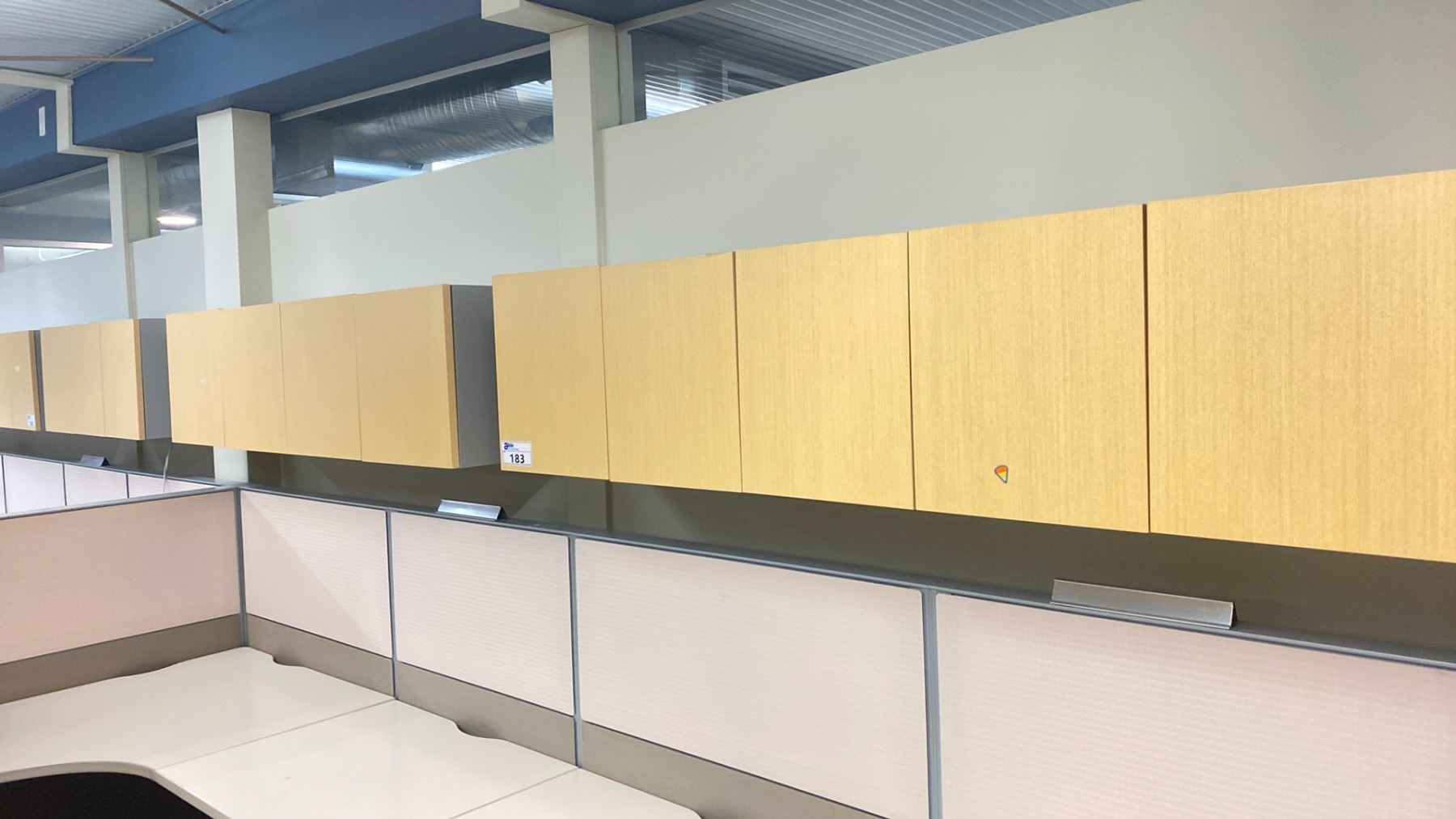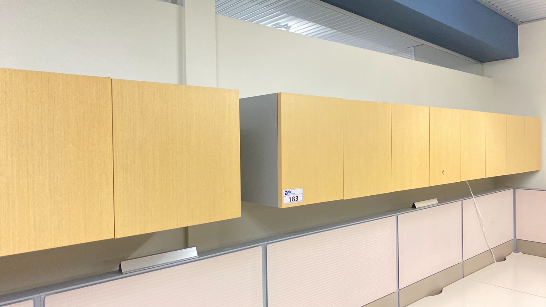 3 NATURAL FINISH WALL MOUNT OFFICE CABINETS APPROX. (2) 53" X 16" X 14" (1) 40" X 16" X 14"