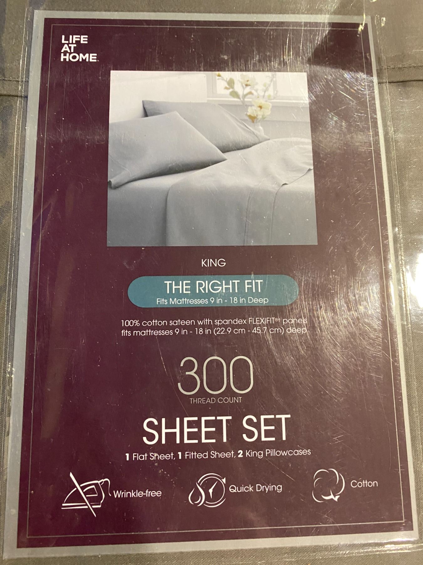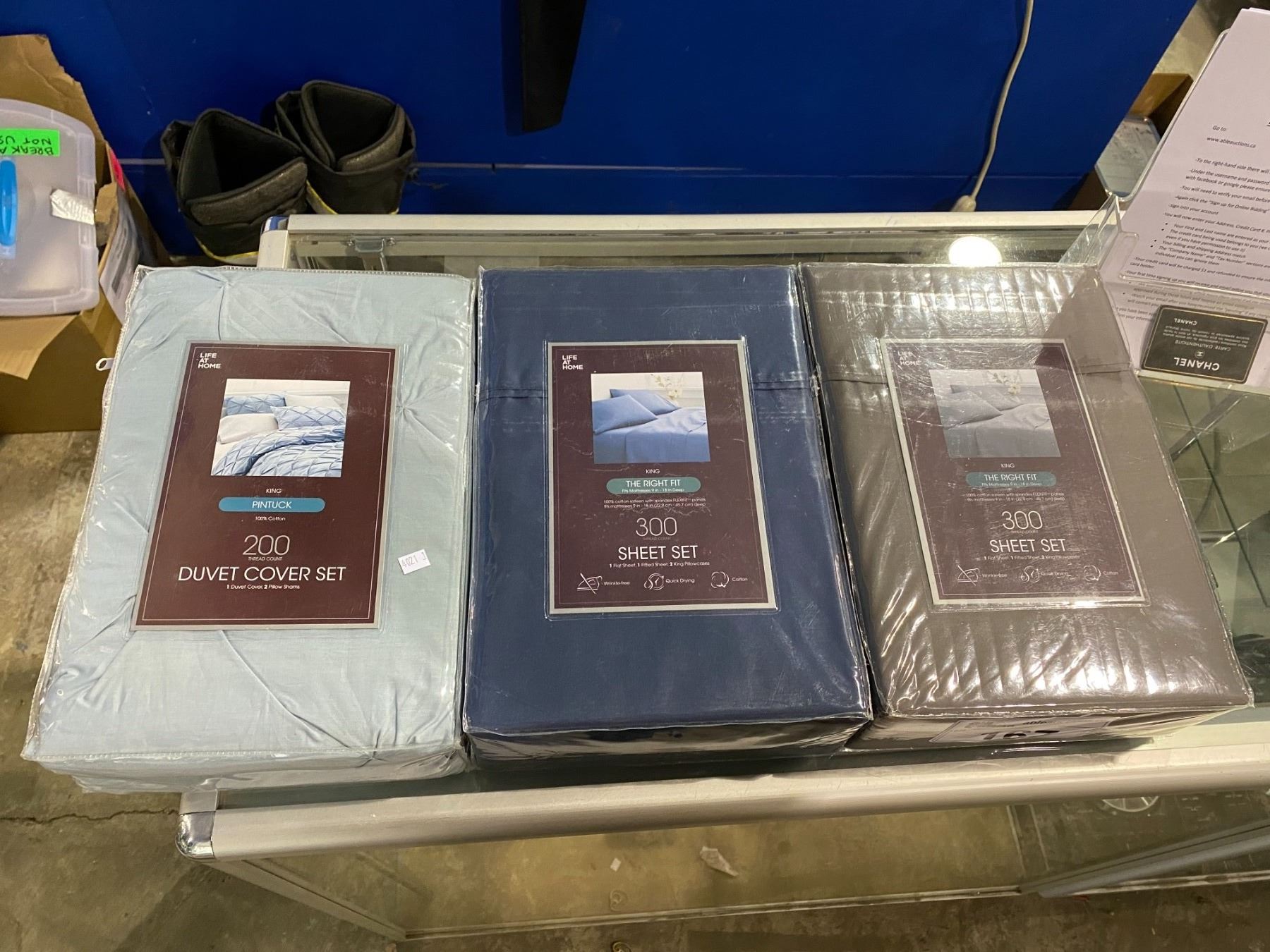 3 NEW IN PACKAGING LIFE AT HOME SETS (2 KING SIZE THE RIGHT FIT & 1 KING SIZE PINTUCK DUVET COVER