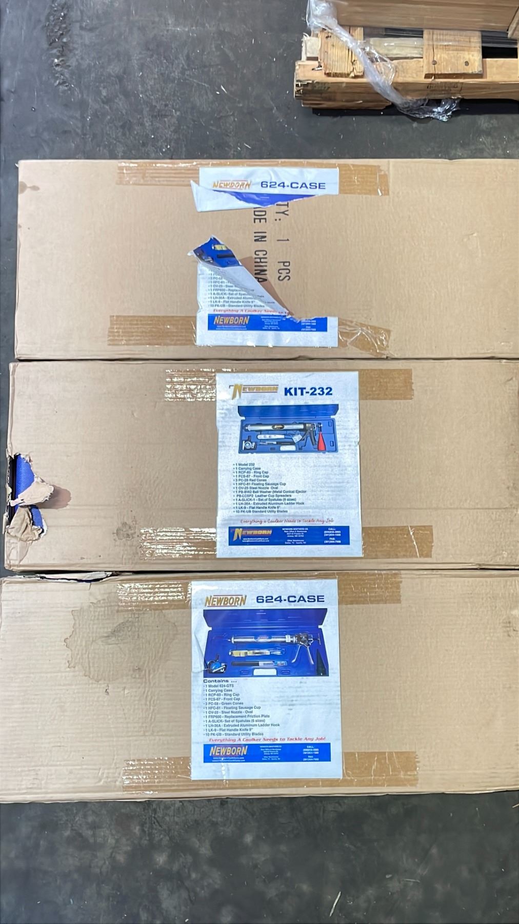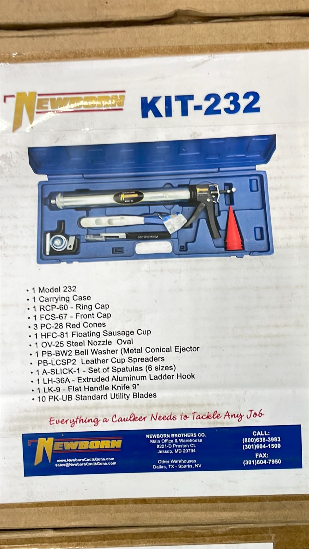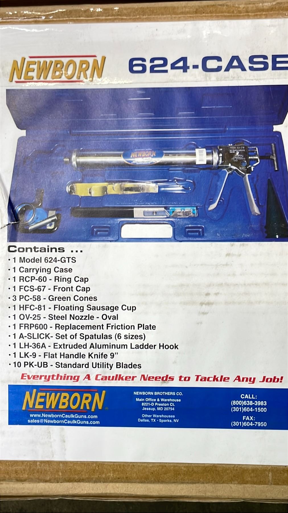 (3) NEWBORN MODEL 624-GTS CAULKING GUN KITS IN HARD CARRY CASES