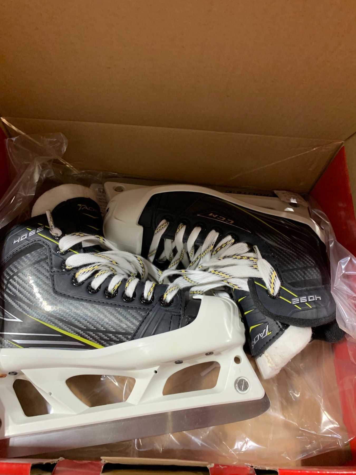 3 PAIRS OF BOXED PROFESSIONAL HOCKEY ICE SKATES: CCM TACKS GOALIE 4092, ( JR SIZE: 2, D WIDTH ) CCM TACKS GOALIE 4092, ( JR SIZE: 3, D WIDTH ) CCM TACKS GOALIE 4092, ( JR SIZE: 4, D WIDTH )