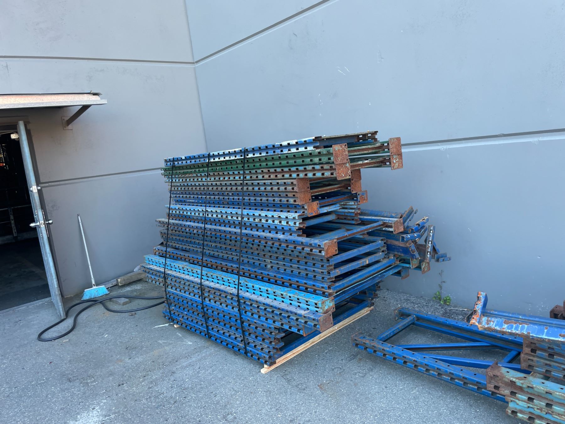 3 PALLETS OF ASSORTED ADJUSTABLE INDUSTRIAL PALLET RACKING, & PALLET OF ORANGE INDUSTRIAL A-FRAMES