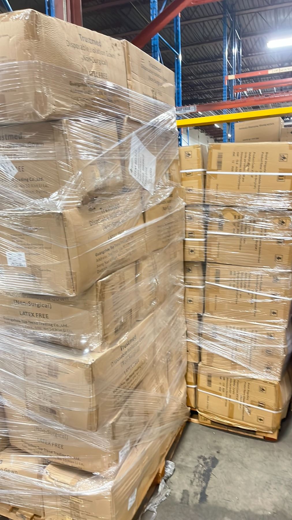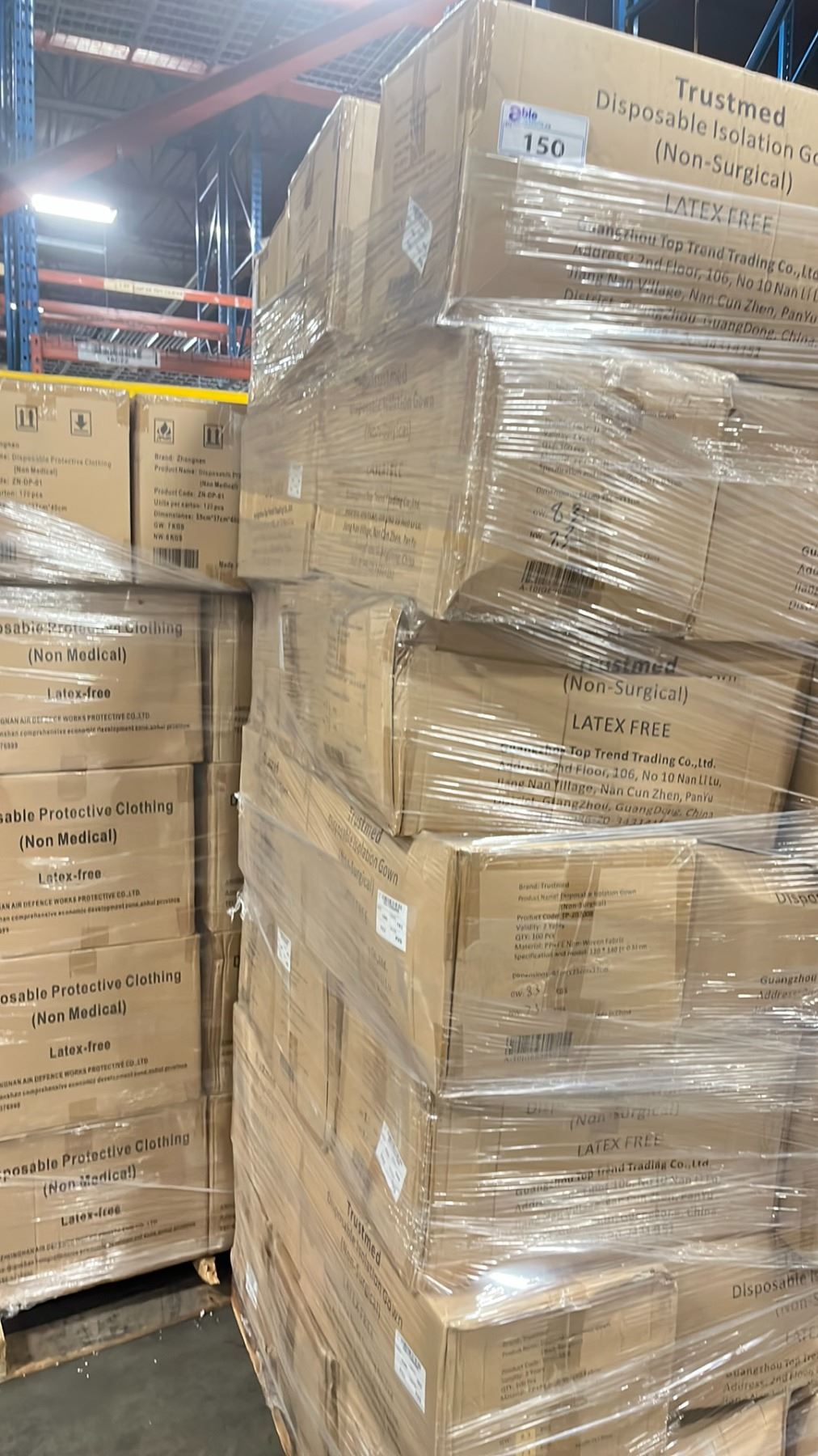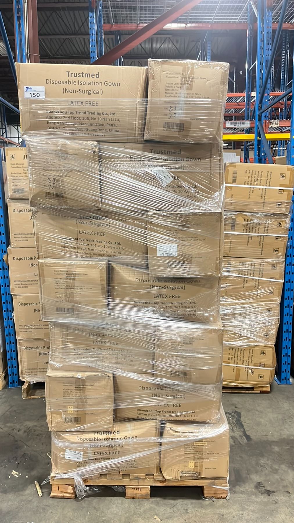 3 PALLETS OF DISPOSABLE ISOLATION GOWNS (NON MEDICAL) -APPROX. 30 BOXES PER PALLET/120 PCS. PER BOX
