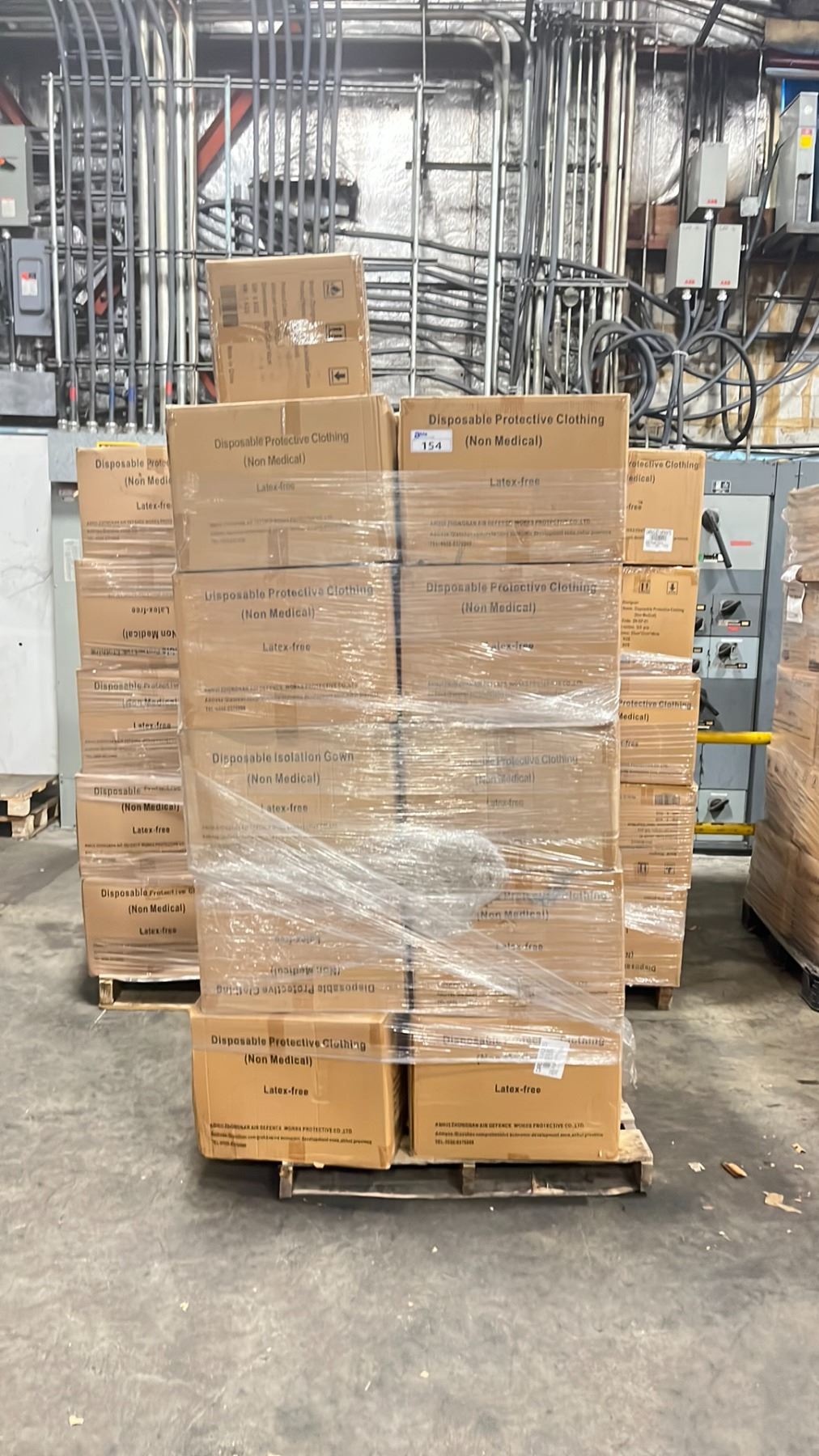 3 PALLETS OF DISPOSABLE ISOLATION GOWNS (NON MEDICAL) -APPROX. 30 BOXES PER PALLET/120 PCS. PER BOX