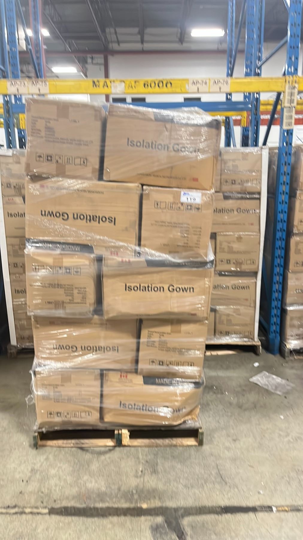 3 PALLETS OF (LEVEL 1) ISOLATION GOWNS WHITE/ MOSTLY SZ LARGE - 25 BOXES PER PALLET/50 PCS. PER