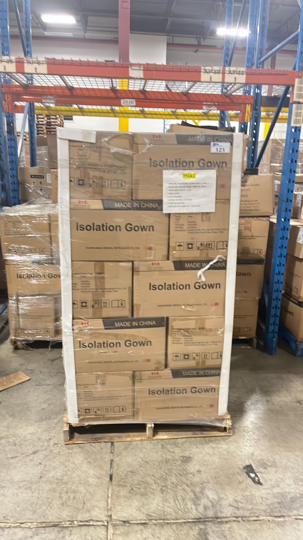 3 PALLETS OF (LEVEL 1) ISOLATION GOWNS WHITE/ MOSTLY SZ LARGE - 25 BOXES PER PALLET/50 PCS. PER