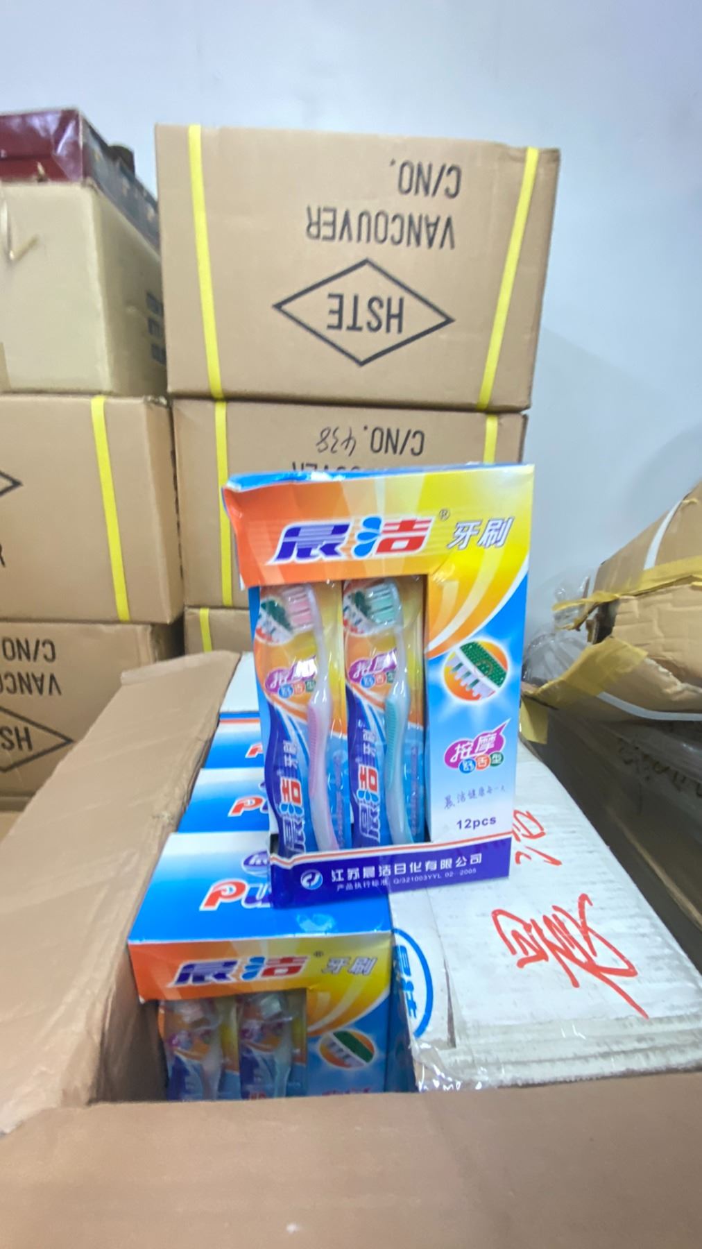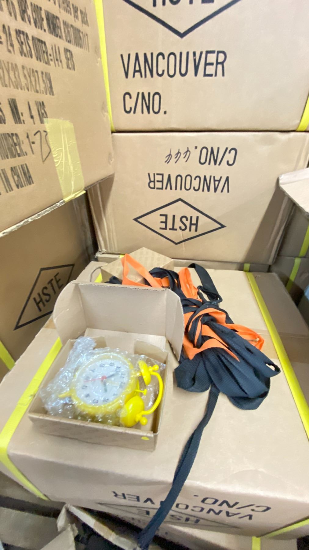 3 PALLETS OF TOOTHBRUSHES, ALARM CLOCKS, DUFFLE BAGS, STATIONERY SETS, MASSAGE PILLOWS, LONG SOCKS