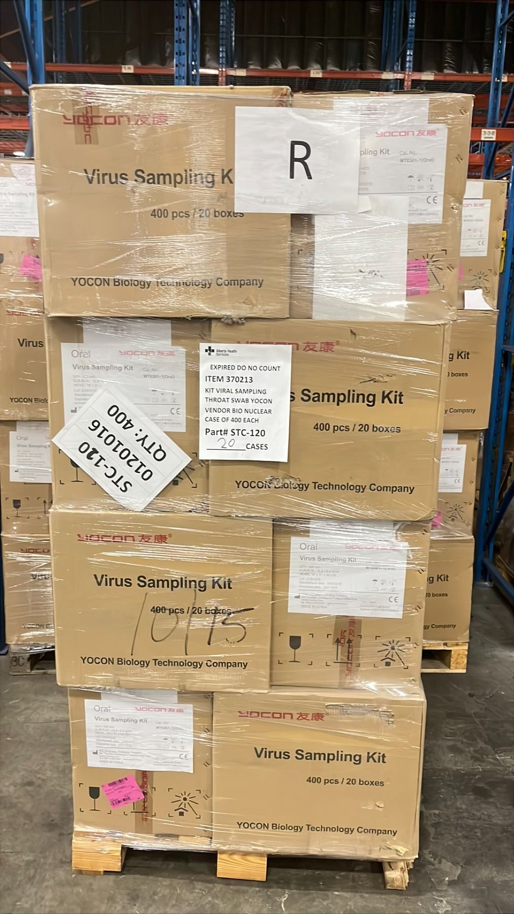 3 PALLETS OF VIRUS SAMPLING KITS - APPROX. 20 BOXES PER PALLET/400 PCS. PER BOX