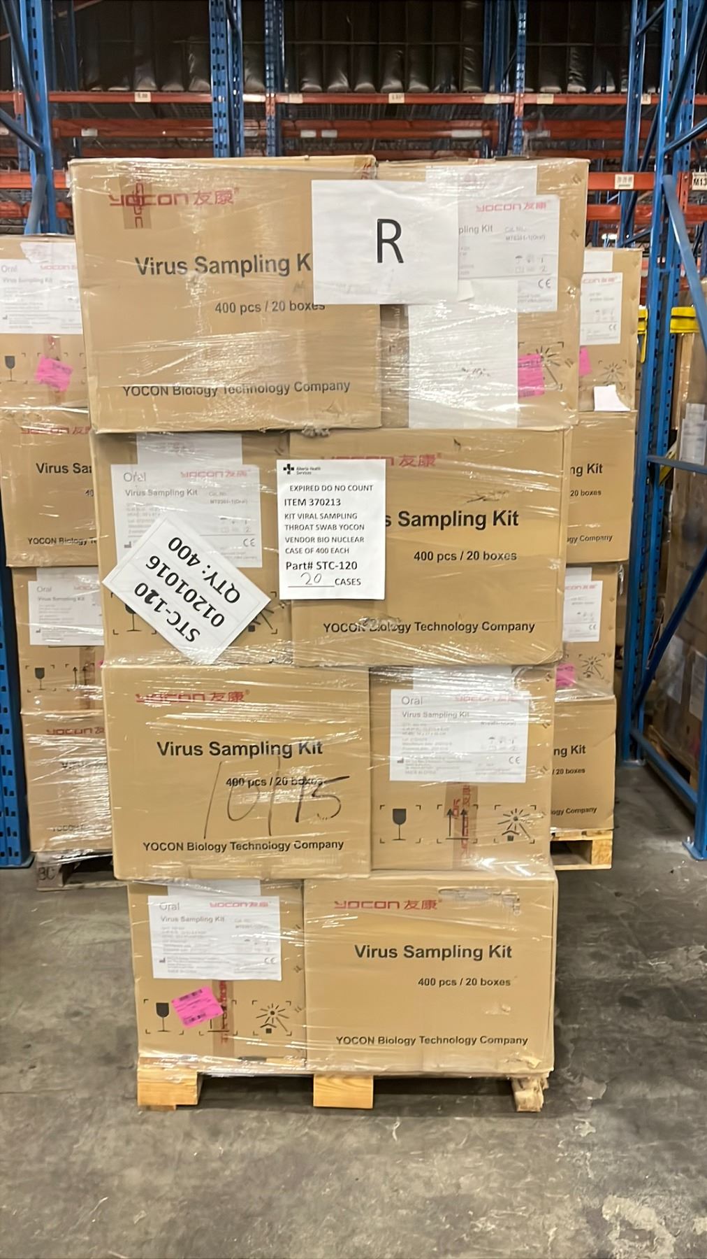3 PALLETS OF VIRUS SAMPLING KITS - APPROX. 20 BOXES PER PALLET/400 PCS. PER BOX