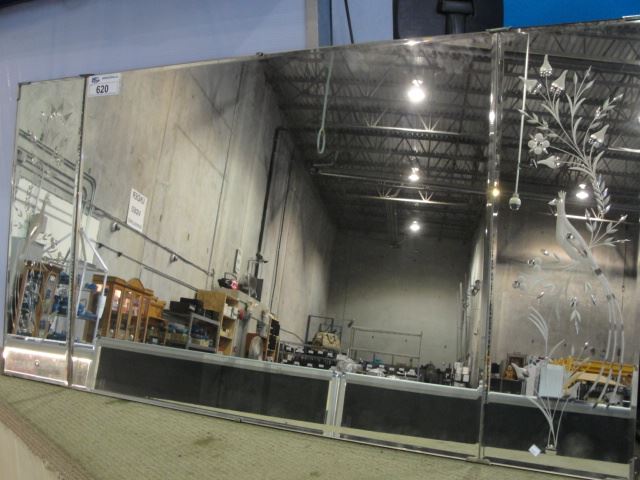 3 PANEL DECORATIVE ETCHED WALL MIRROR