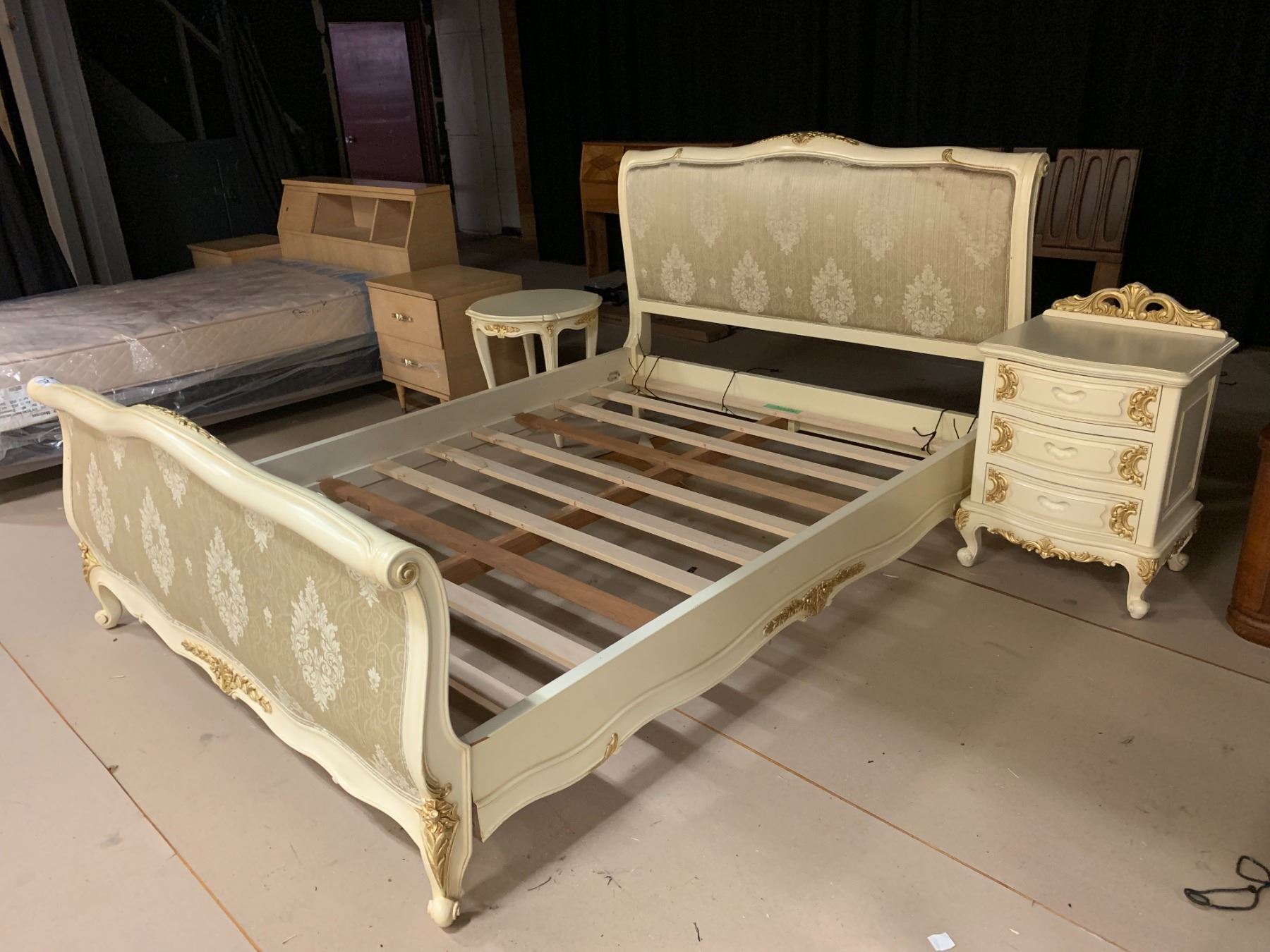 3-PC BEDROOM SET INCLUDING; QUEEN SIZE BED FRAME, NIGHTSTAND & ROUND TABLE