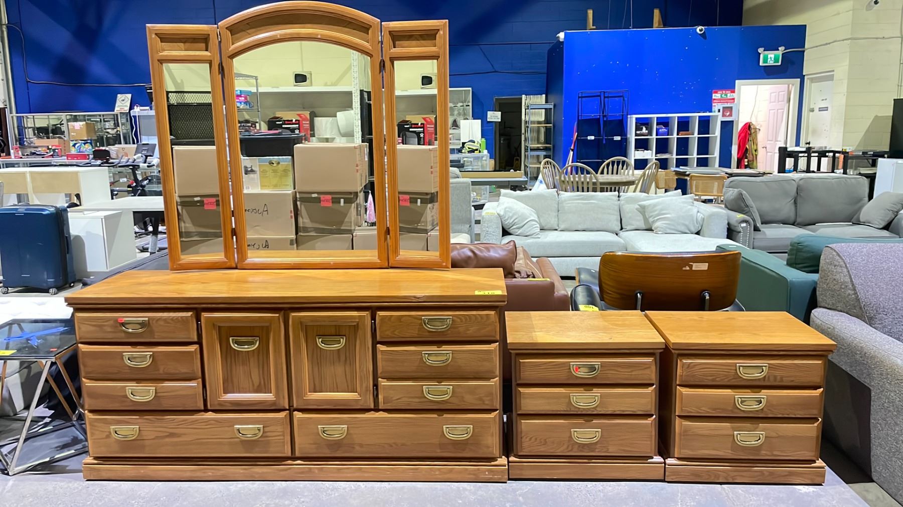 3-PC BEDROOM SUITE INCLUDING; DRESSER WITH VANITY & 2 NIGHTSTANDS