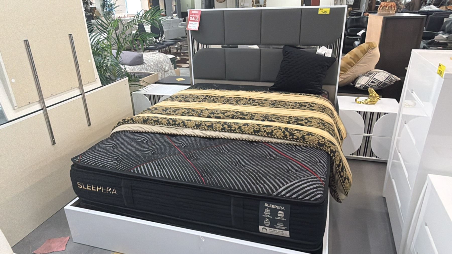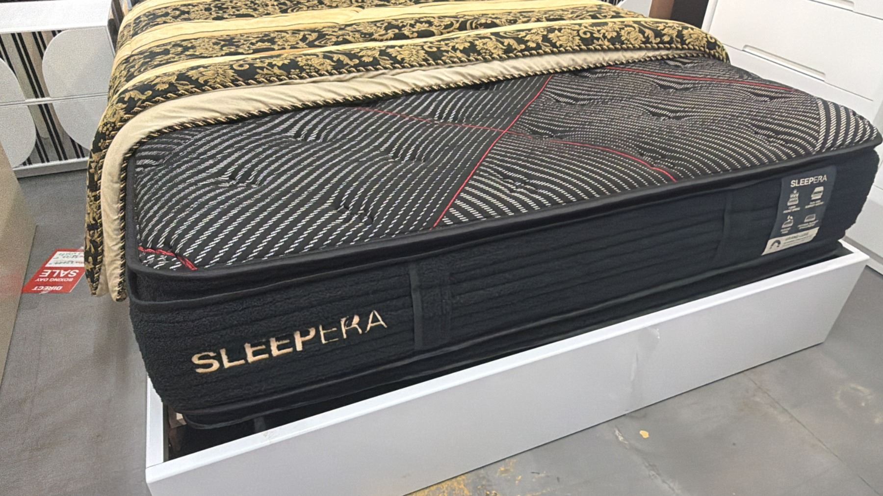 3-PC BEDROOM SUITE INCLUDING; MODERN QUEEN SIZE BED WITH SLEEPERA MATTRESS & (2) SIDE TABLES