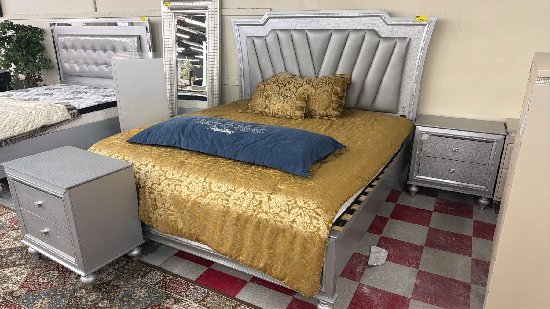 3-PC BEDROOM SUITE INCLUDING; QUEEN SIZE BED FRAME WITH EURO DELUXE MATTRESS & (2) SIDE TABLES