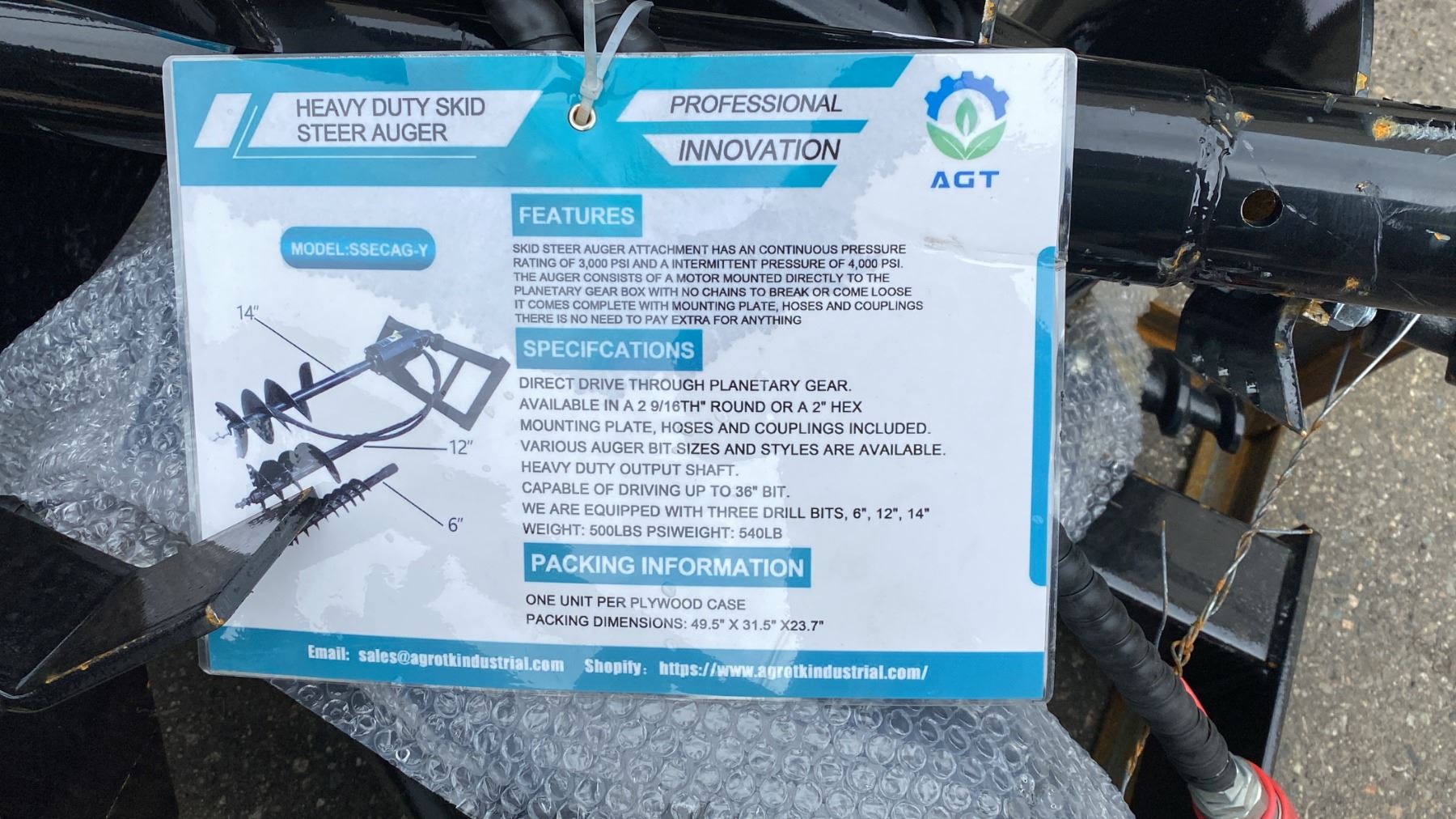 3 PC SKID STEER AUGER ATTACHMENT SET
