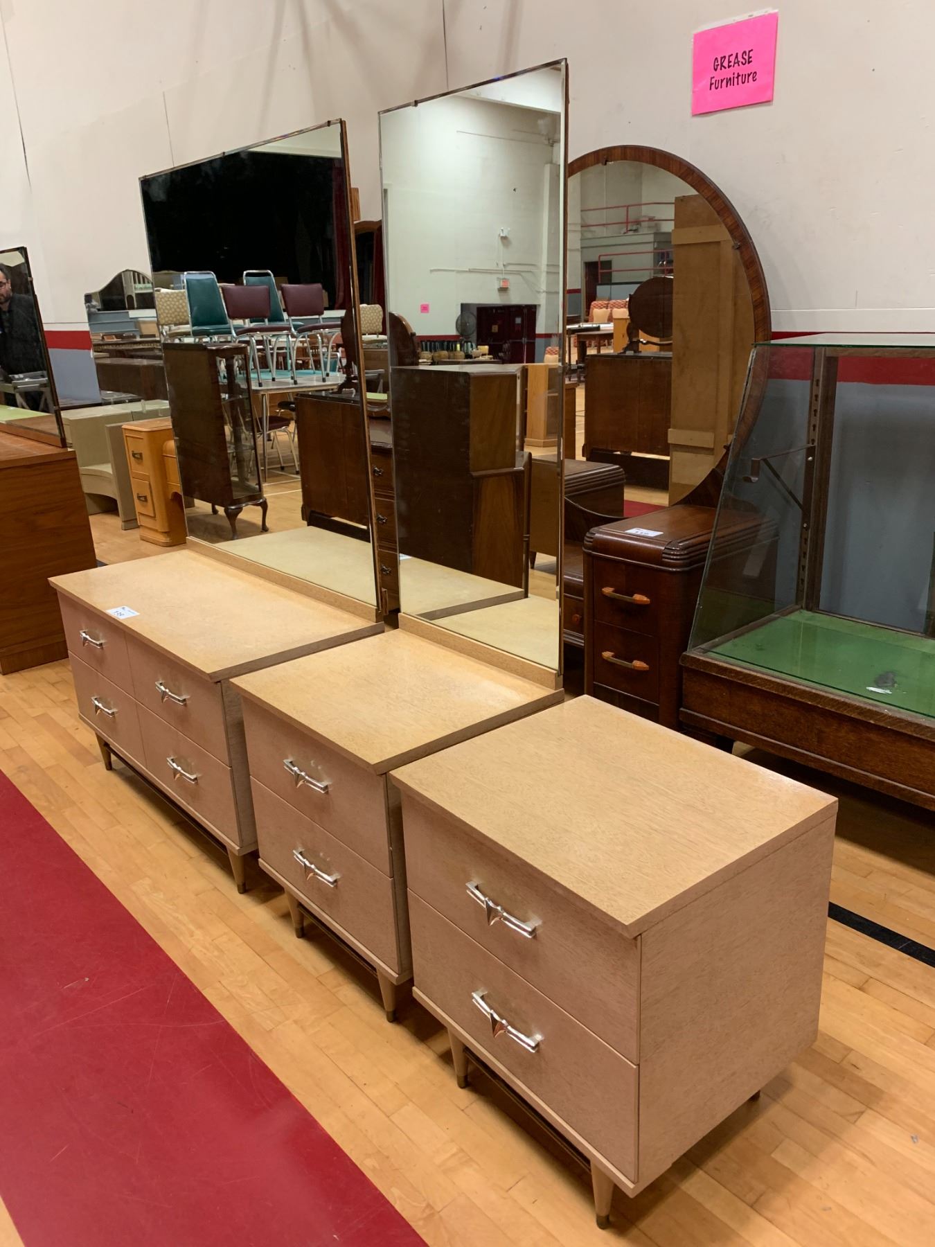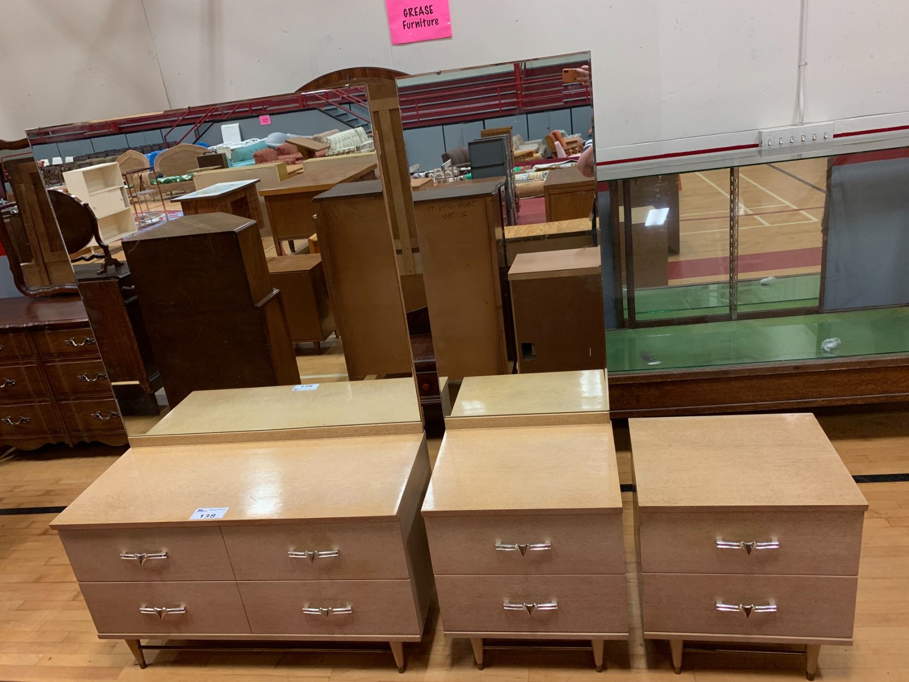 3-PC WOOD BEDROOM SET INCLUDING; DRESSER WITH MIRROR (67"X42"X18") & 2 NIGHT STANDS (1 WITH MIRROR, APPROX 24"X21"X18"
