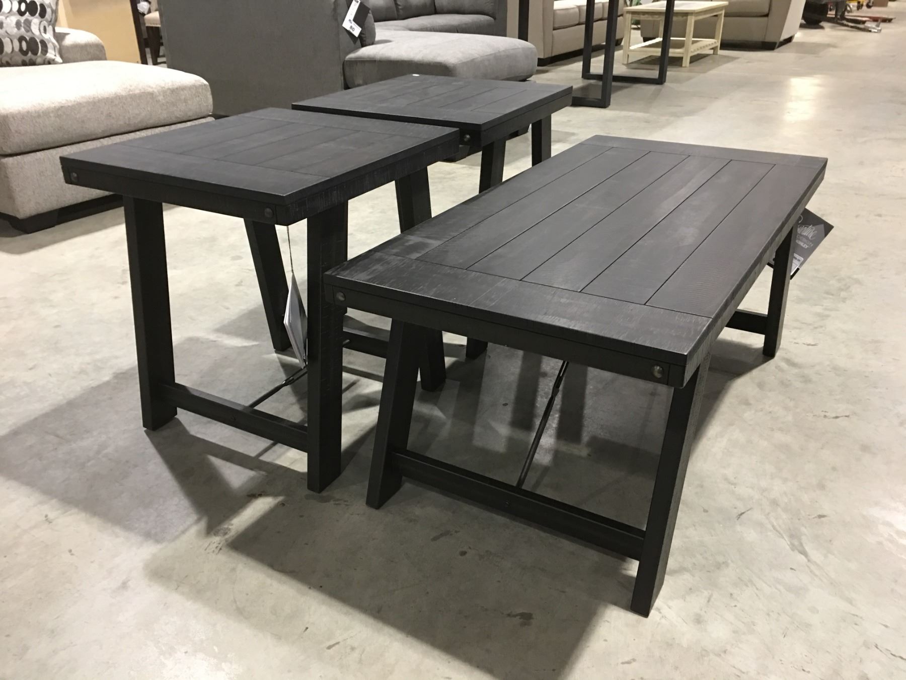 3 PCE CHARCOAL GREY COFFEE & END TABLE SET