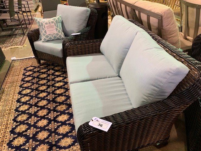 3 PCS 2 - TONE PLASTIC RATTAN OUTDOOR PATIO CHAT SET INCLUDING: 2 SEAT SOFA & 2 ARM CHAIRS WITH CUSHIONS