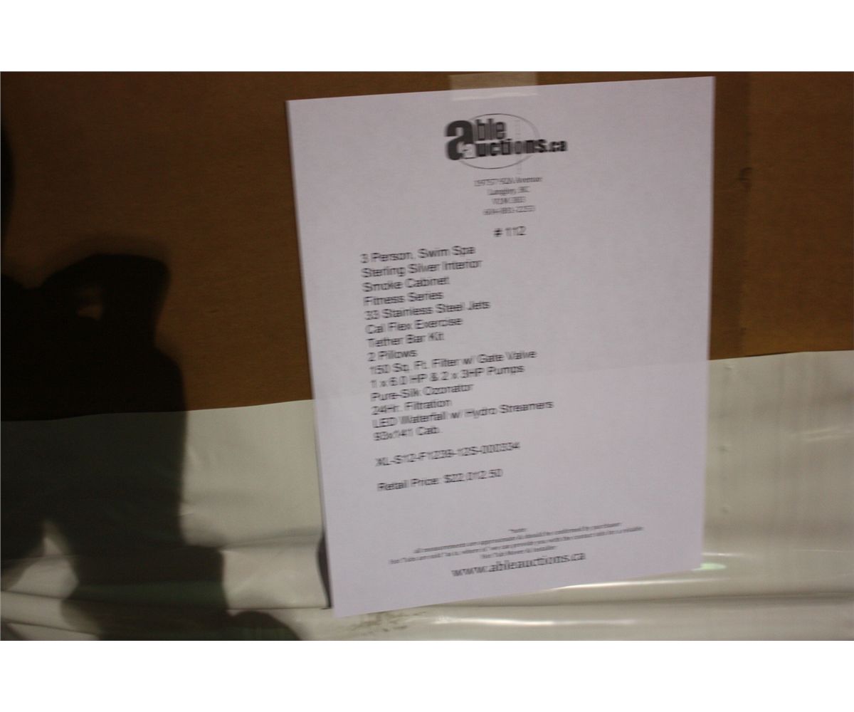 3 PERSON, SWIM SPA, STERLING SILVER, SMOKE CABINET, 39 SS JETS, CAL FLEX EQUIPMENT, TETHER BAR KIT, 2 PILLOWS, 1X6HP PUMP & 2X3 HP PUMPS, OZONATOR, LED WATERFALL W/HYDRO STREAMERS 93X41 CABINET XL-S12-F1239-12S-000334
