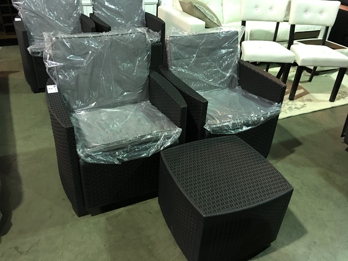 3 PIECE PATIO LOUNGE SET - 2 CHAIRS  WITH CUSHIONS &  1 SIDE TABLE