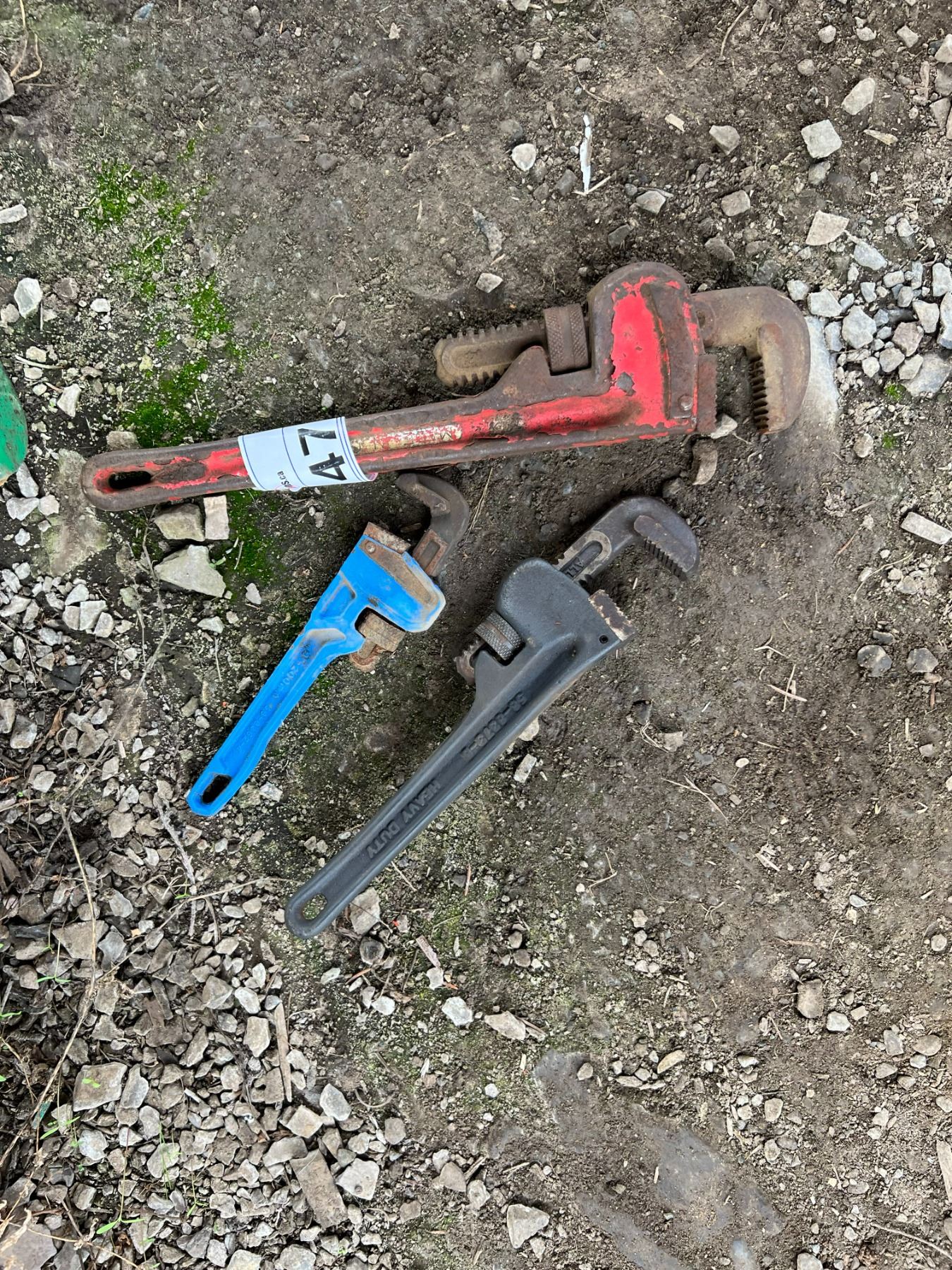 3 PIPE WRENCHES. 14", 10", 8"