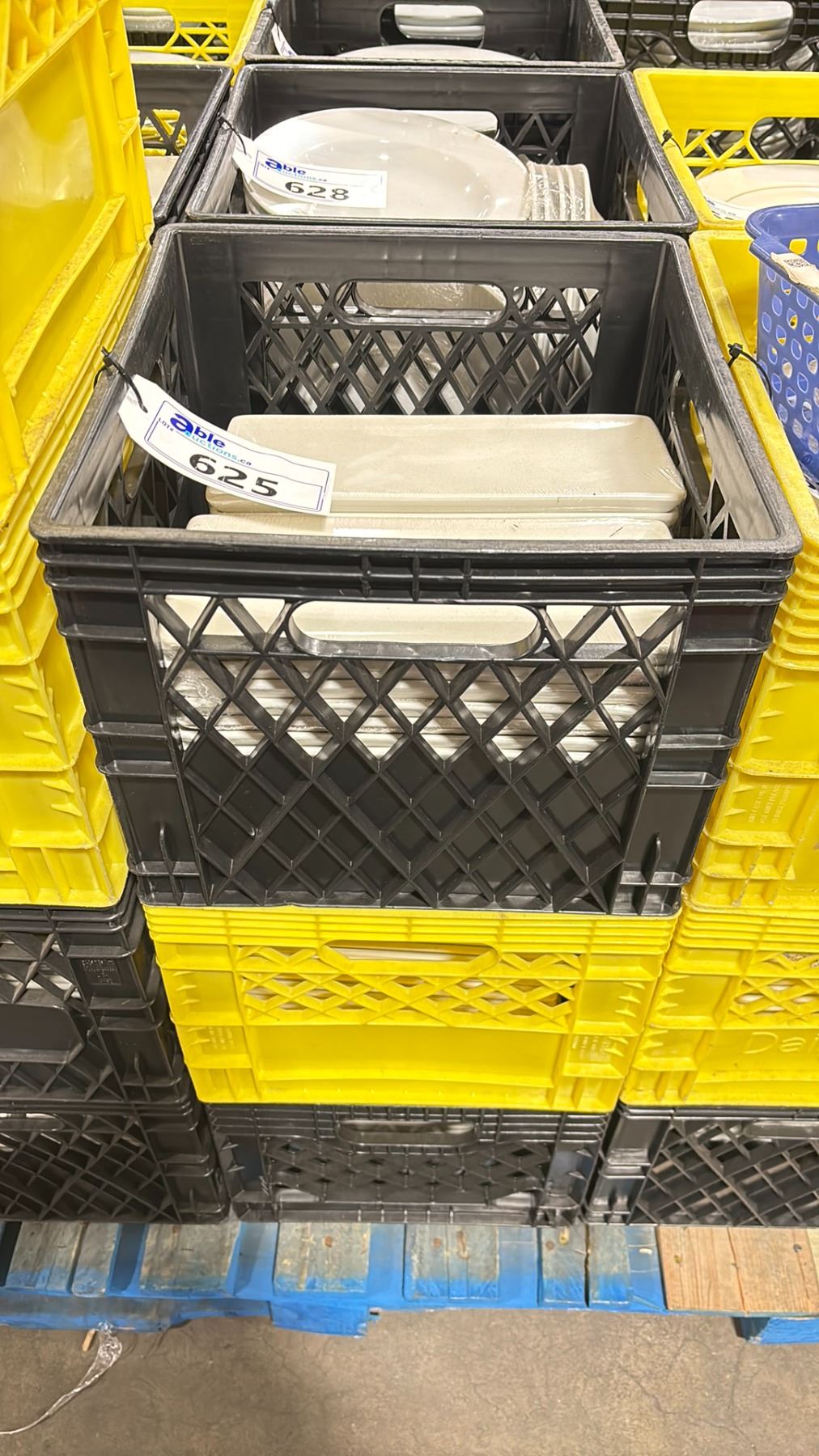 3 PLASTIC CRATES OF 10"W RECTANGLE COMMERCIAL RESTAURANT APPETIZER PLATES *PLASTIC CRATES INCLUDED* ( APPROX. 30 PLATES PER CRATE )