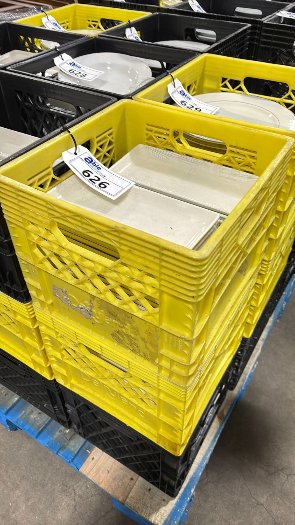 3 PLASTIC CRATES OF 10"W RECTANGLE COMMERCIAL RESTAURANT APPETIZER PLATES *PLASTIC CRATES INCLUDED* ( APPROX. 30 PLATES PER CRATE )