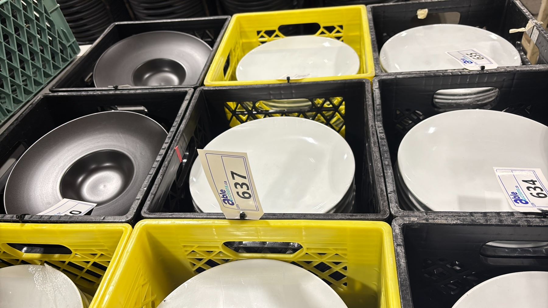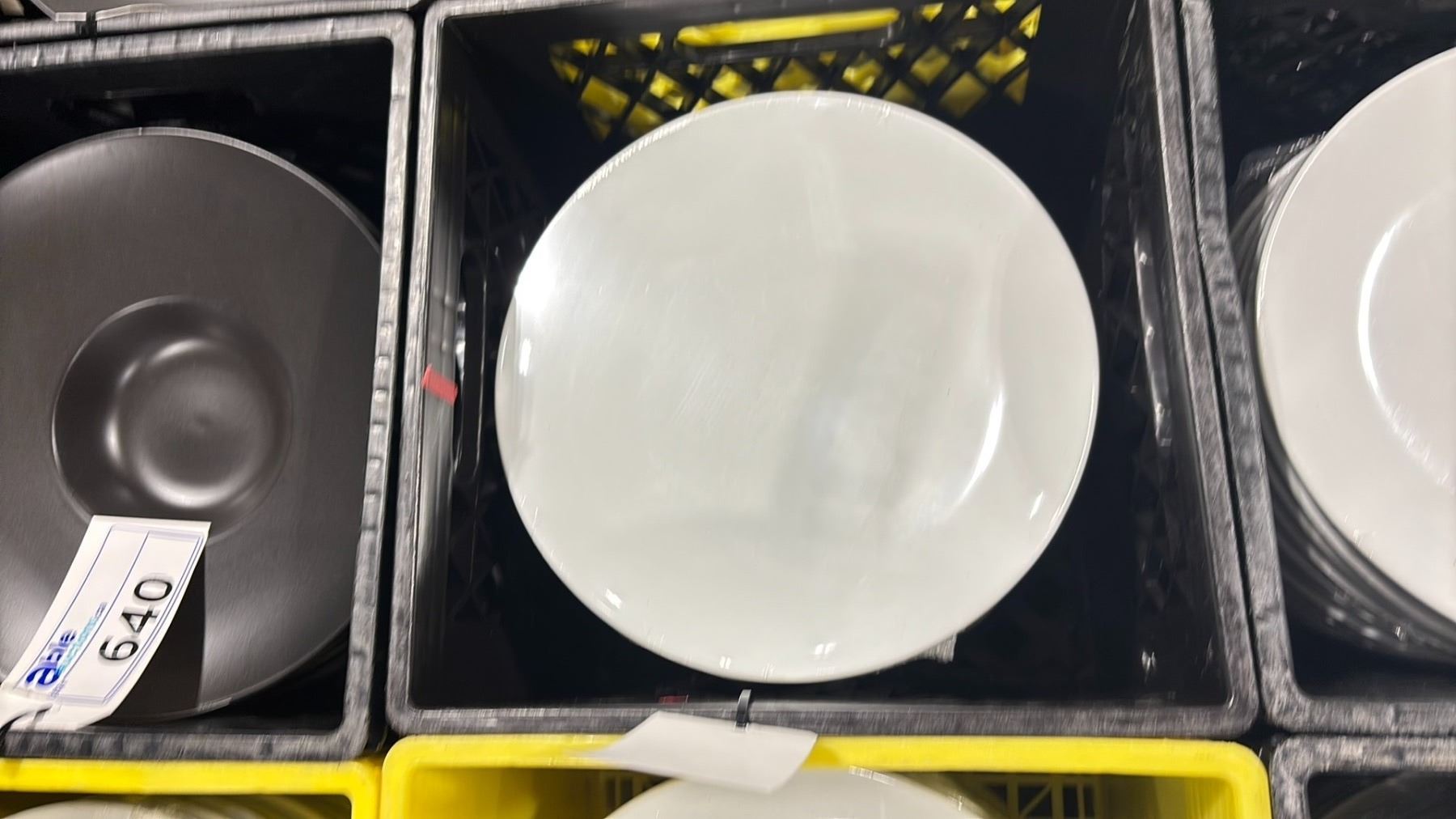 3 PLASTIC CRATES OF 11  ROUND COMMERCIAL RESTAURANT PORCELAIN DINNER PLATES *CRATES INCLUDED*