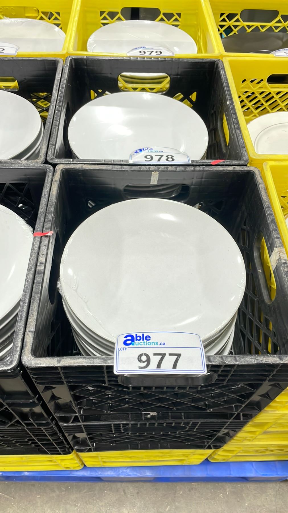 3 PLASTIC CRATES OF 11" WHITE COMMERCIAL RESTAURANT DINNER PLATES *PLASTIC CRATES INCLUDED* ( APPROX. 15 PLATES PER CRATE )