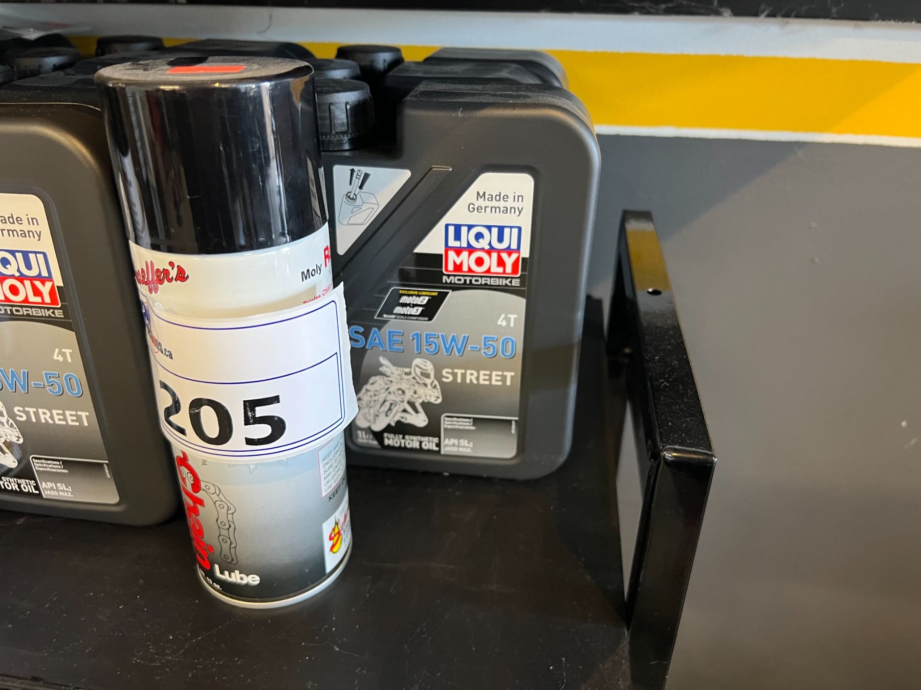 3 QUARTS LIQUI MOLY 15W/50 SYNTHETIC OIL, CAN SPAY LUBE