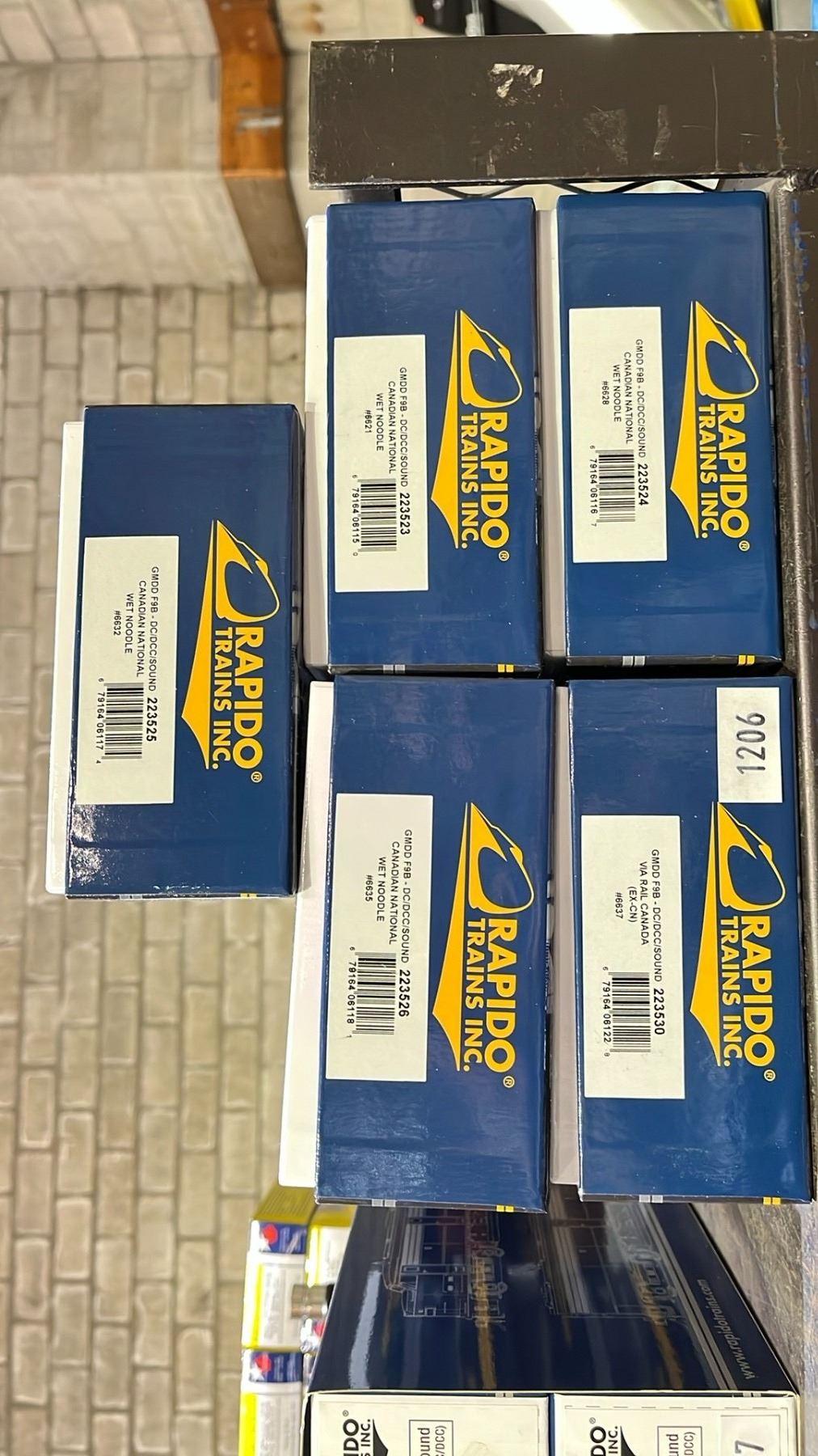 3 RAPIDO TRAINS INC CANADIAN NATIONAL WET NOODLE SCHEME HO SCALE MODEL TRAINS & A VIA RAIL CANADA HO SCALE MODEL TRAIN