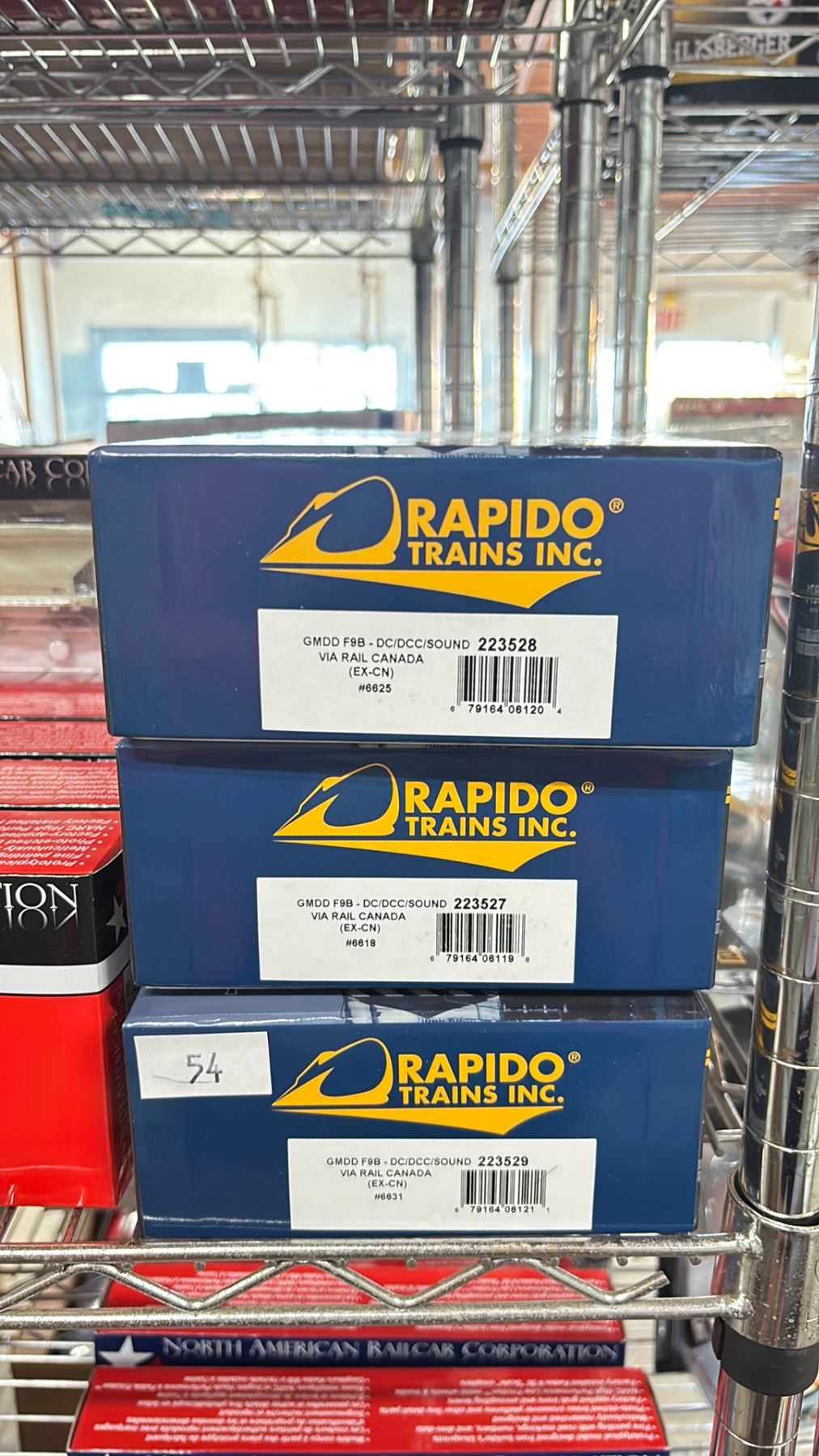 (3) RAPIDO TRAINS TRUE NORTH LOCOMOTIVES GMDD D9B VIA RAIL CANADA (EX-CN) HO SCALE MODEL TRAINS