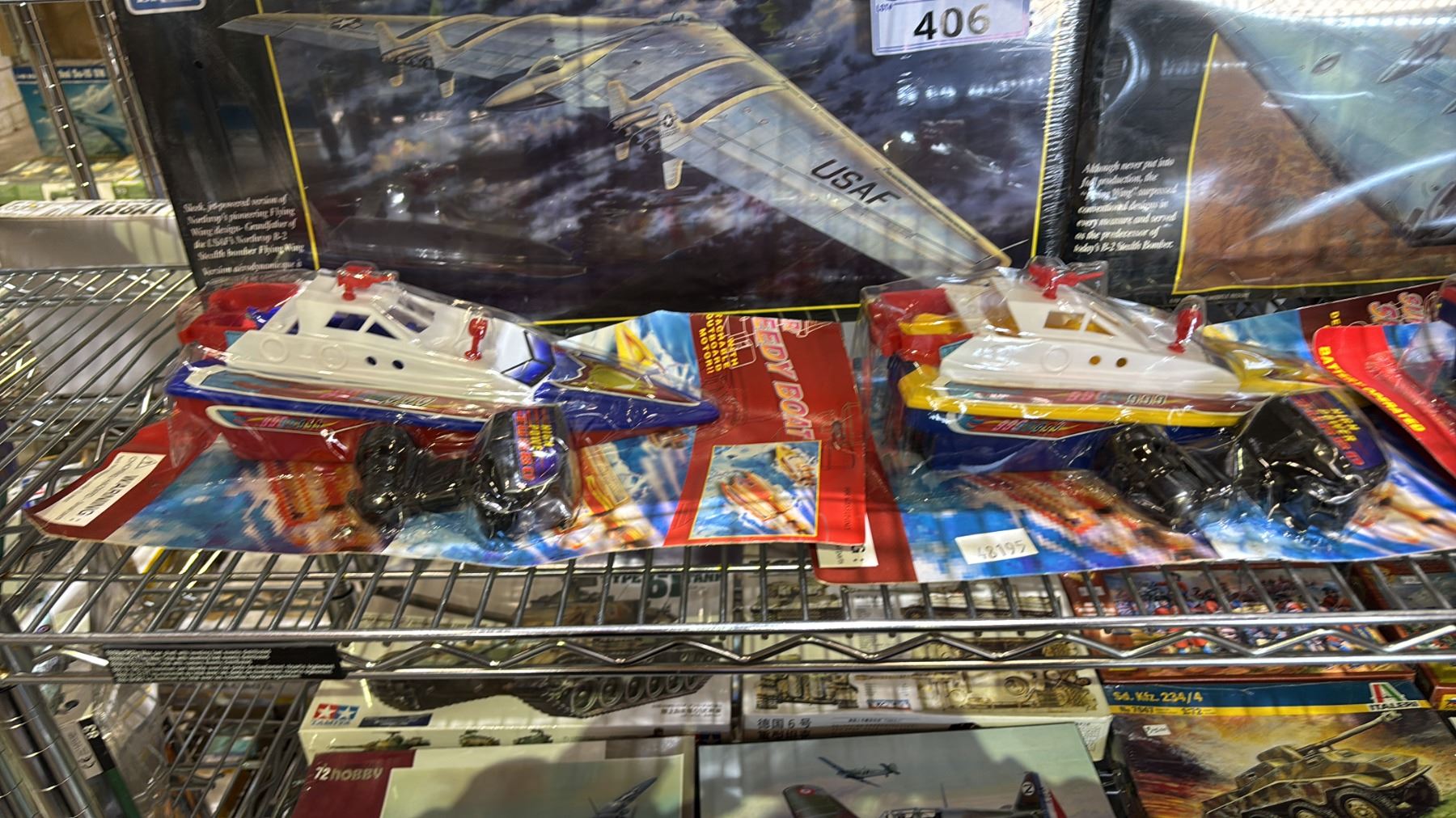 (3) RC OUTBOARD MOTOR BOATS & (2) FLYING WIND AIRPLANE MODEL KITS
