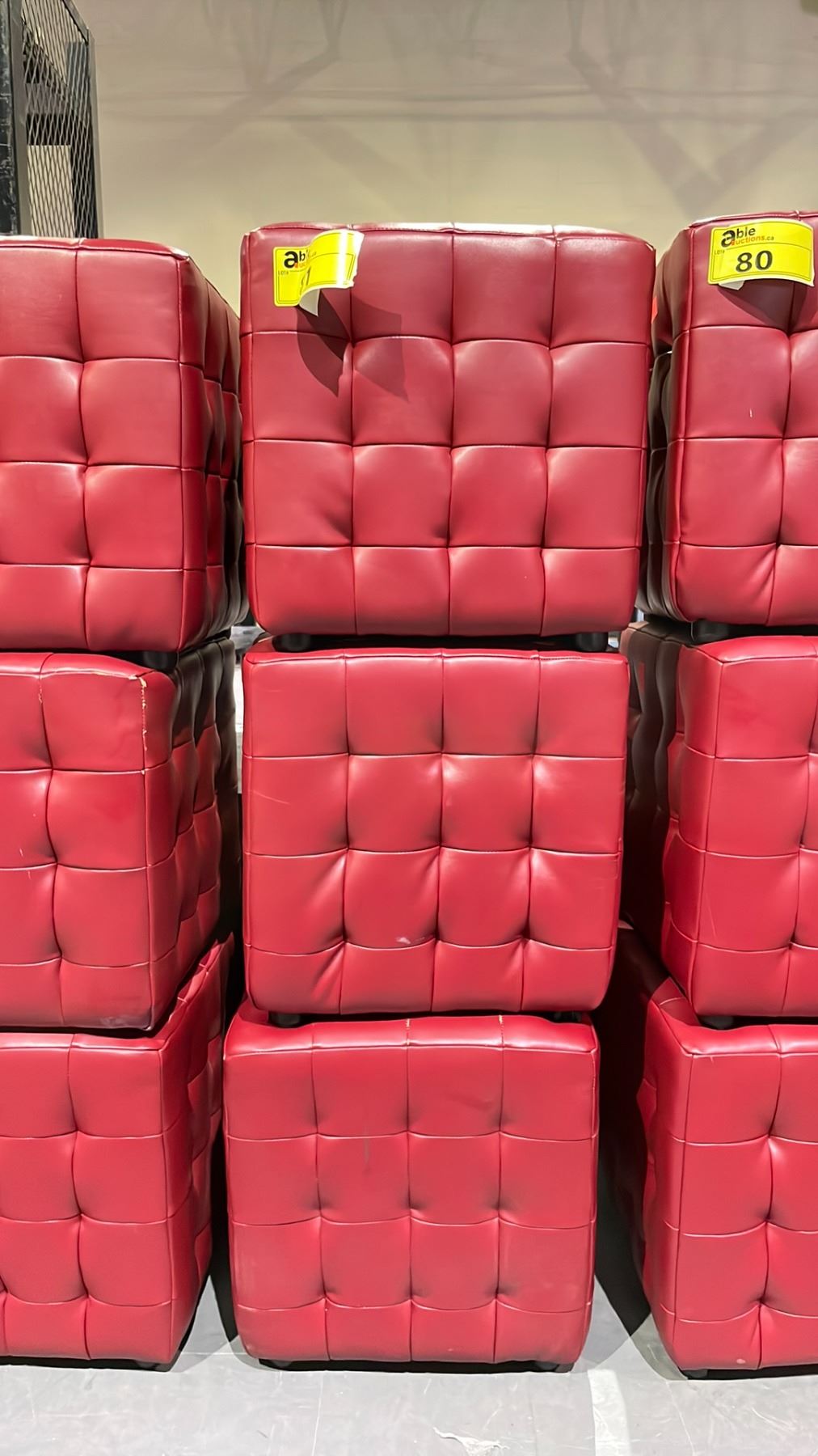 3 RED PADDED CUBE OTTOMANS 15.5" X 15.5" X 15.5"