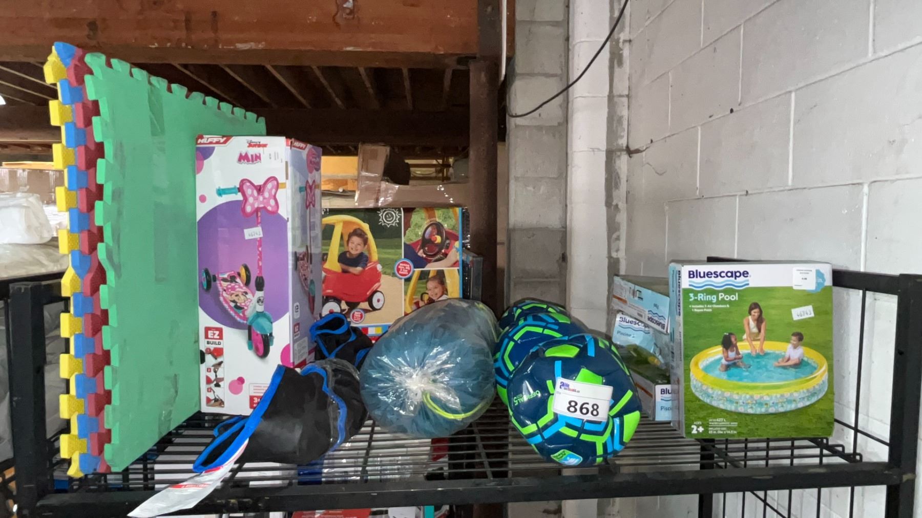 3 RING POOL, MINNIE MOUSE SCOOTER, FOAM PLAY MATS, SOCCER BALLS & MORE