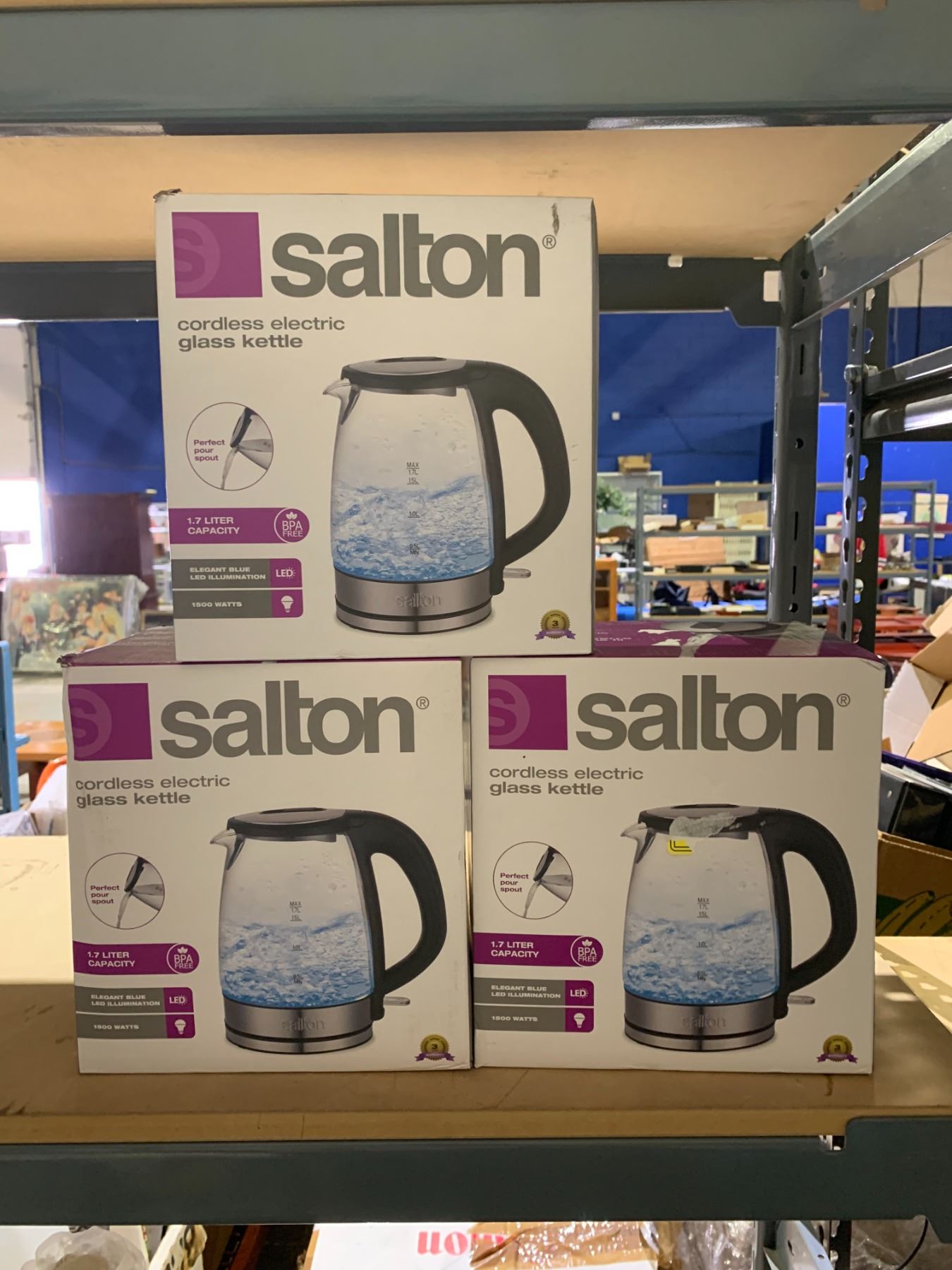 3 SALTON CORDLESS ELECTRIC GLASS KETTLES
