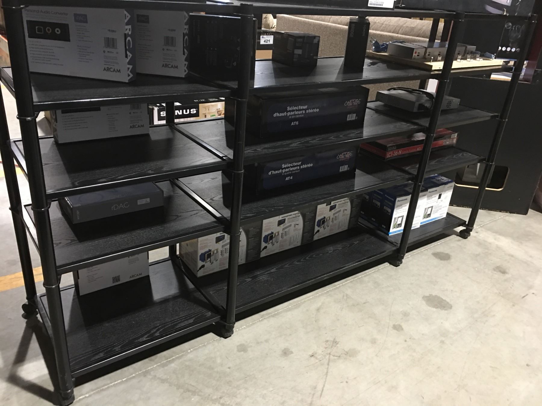 3 SECTION 5 TIER BLACK WOOD & METAL AUDIO/VIDEO STAND