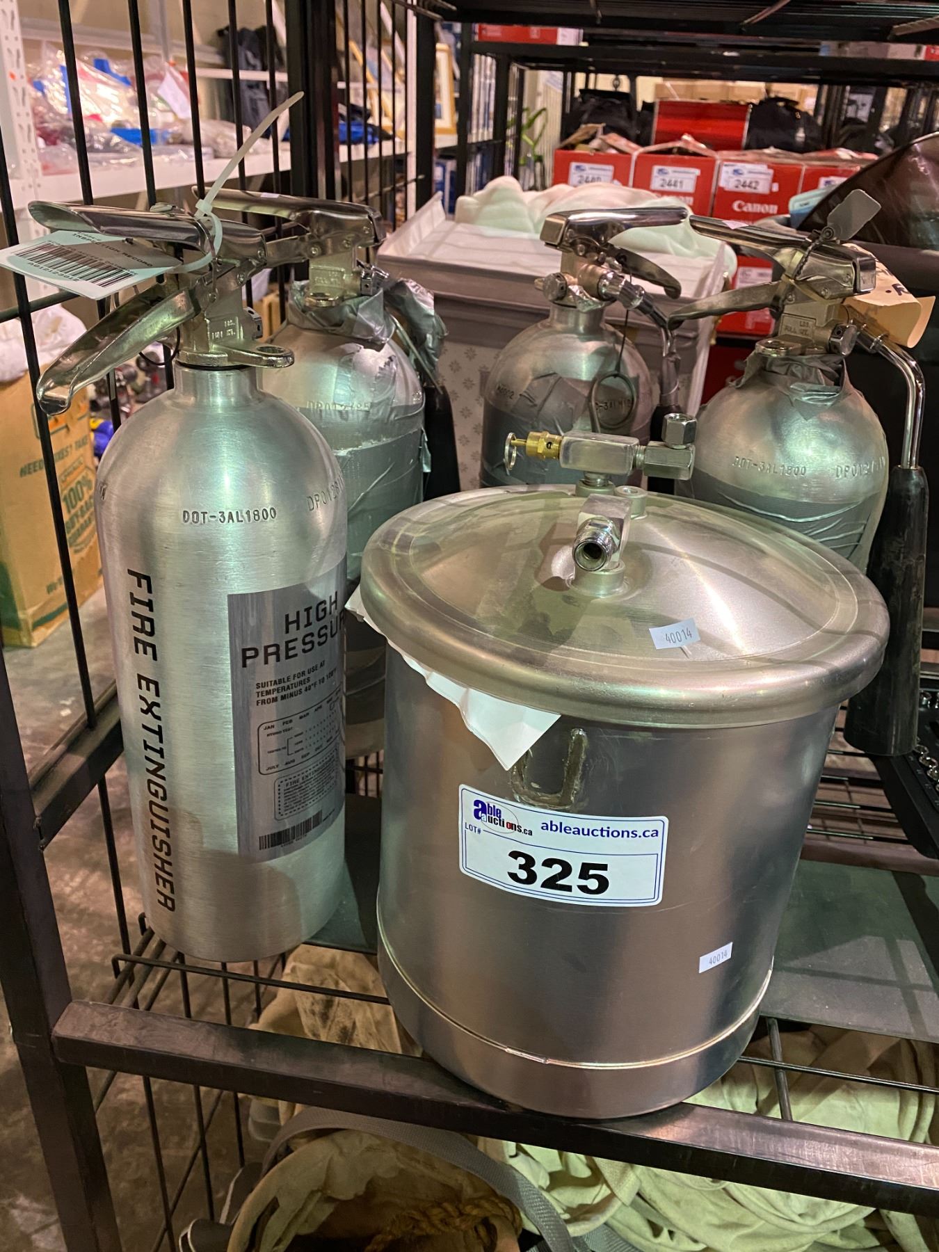 3 SET DEC PROP FIRE EXTINGUISHERS & PAINT SPRAYER CANISTER