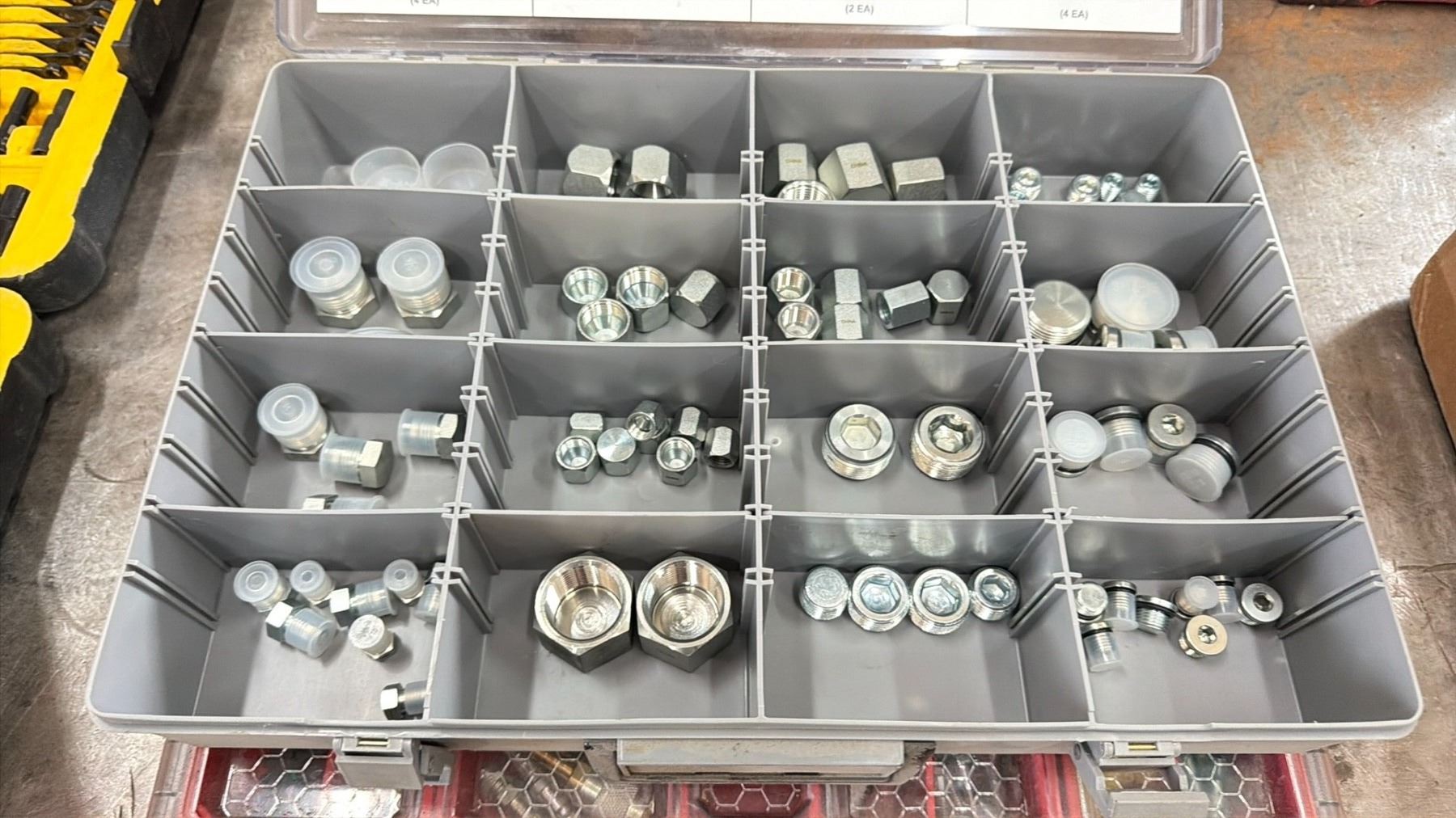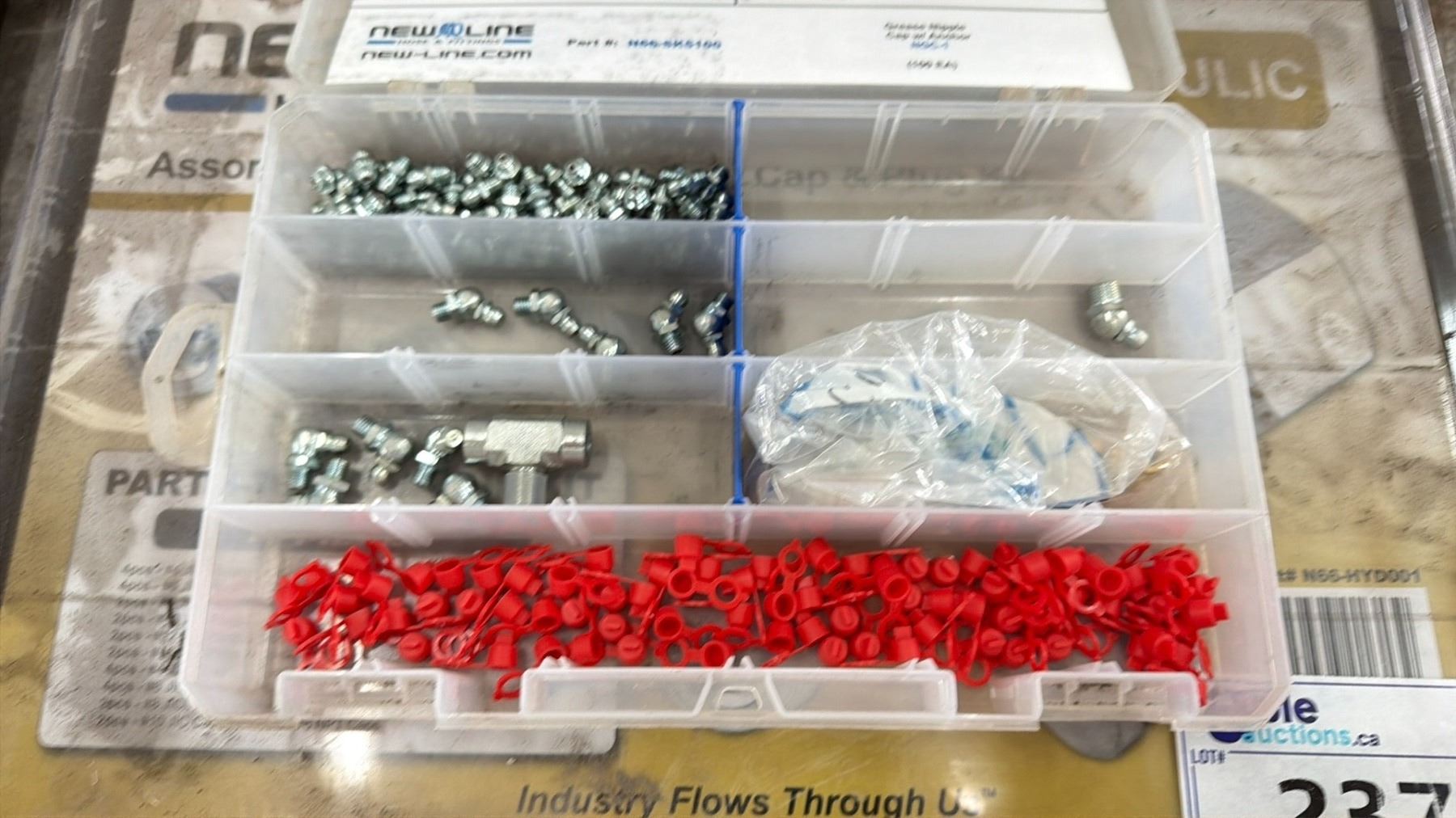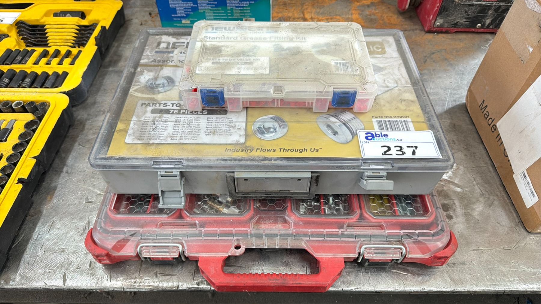 3 SETS OF ASSORTED FITTINGS - GREASE FITTING KIT, STEEL CAP & PLUG KIT AND MILWAUKEE PACKOUT KIT