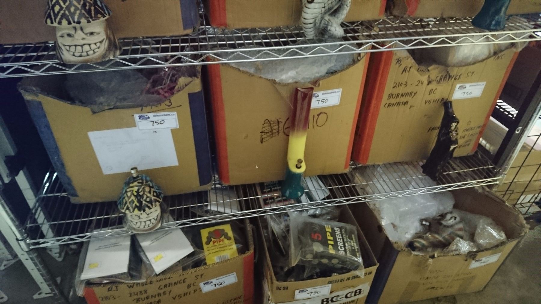 3 SHELF LOTS OF ASSORTED BONGS, ETC