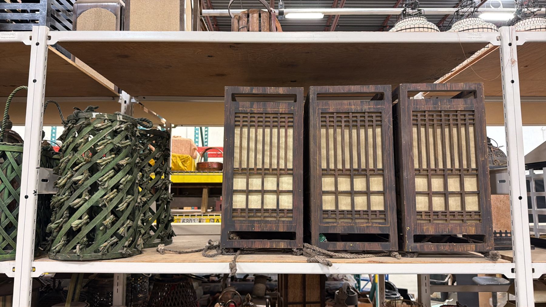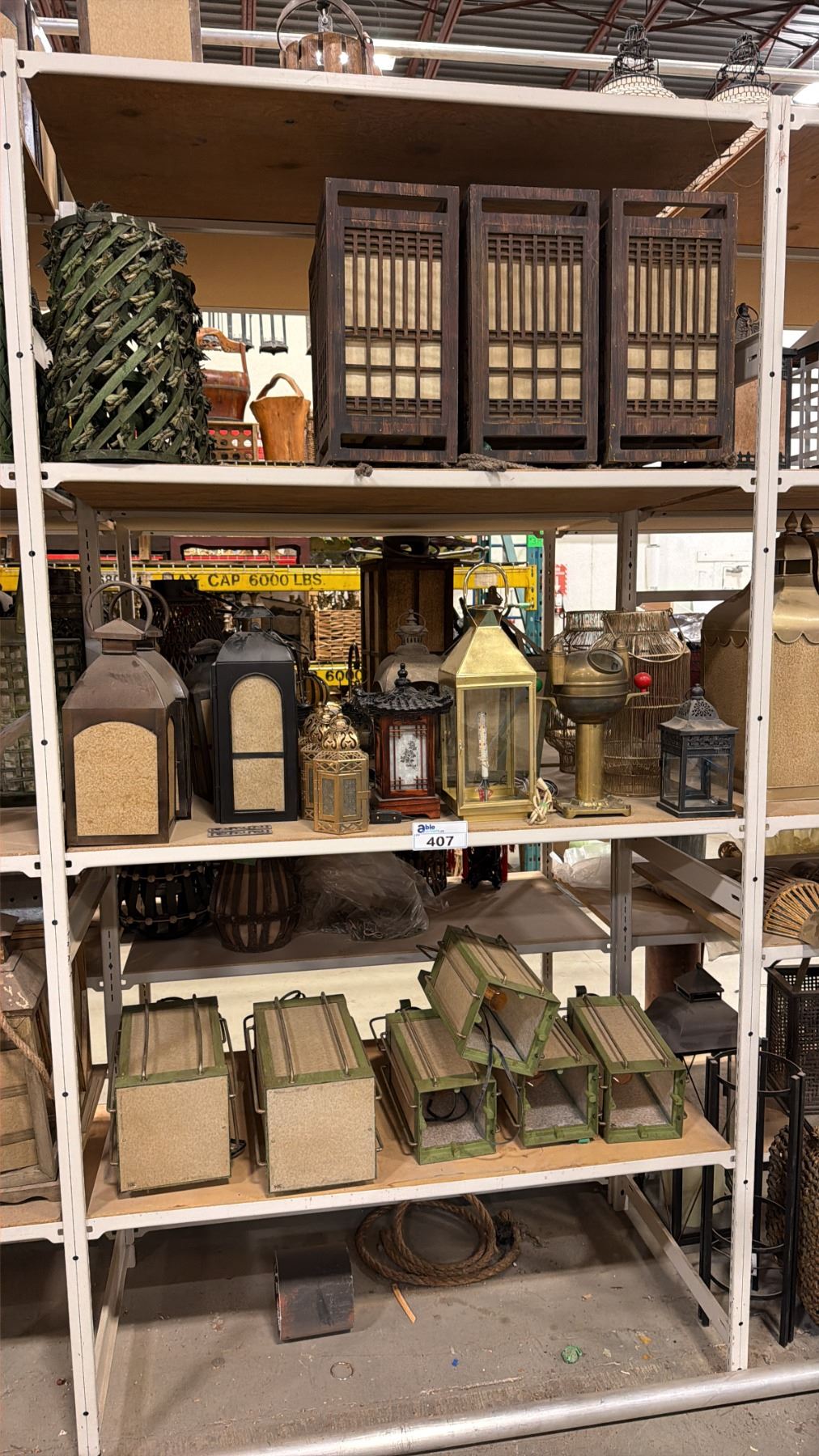 3 SHELVES OF ASSORTED ASIAN LANTERNS, LIGHTS & DECOR ITEMS