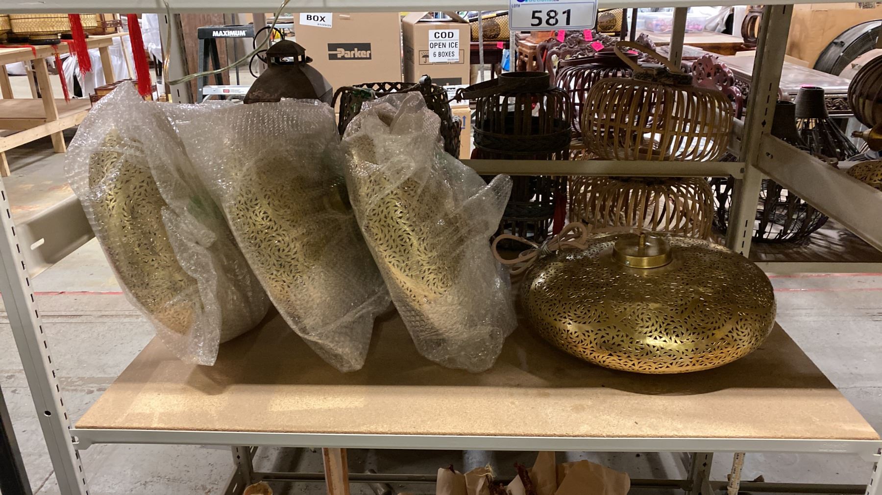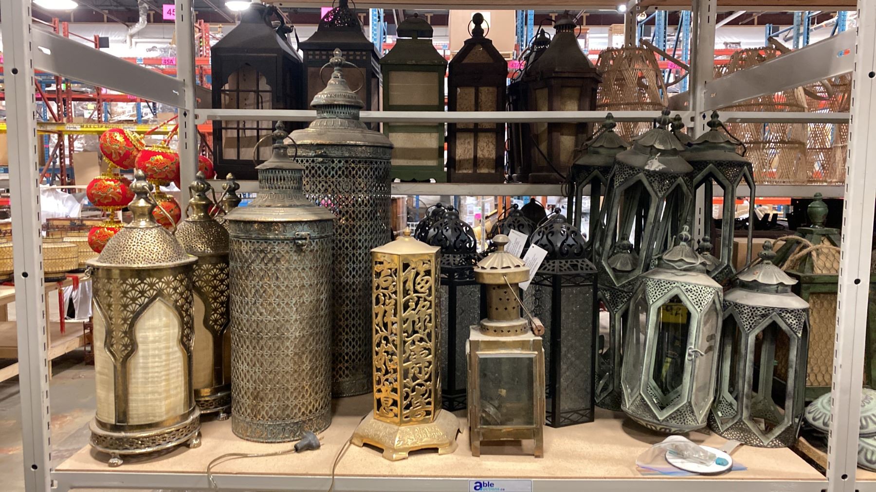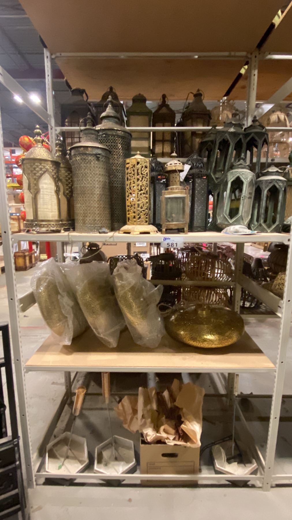 3 SHELVES OF ASSORTED CHINESE LANTERNS/DECOR