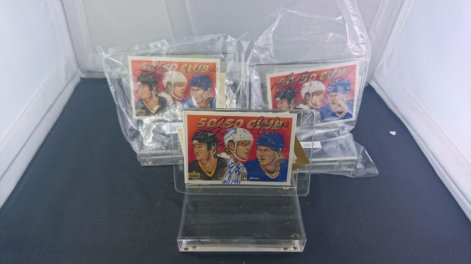 3 SIGNED LIMITED EDITION 50 CLUB HOCKEY CARDS LIMIEUX, HULL, GRETZKY