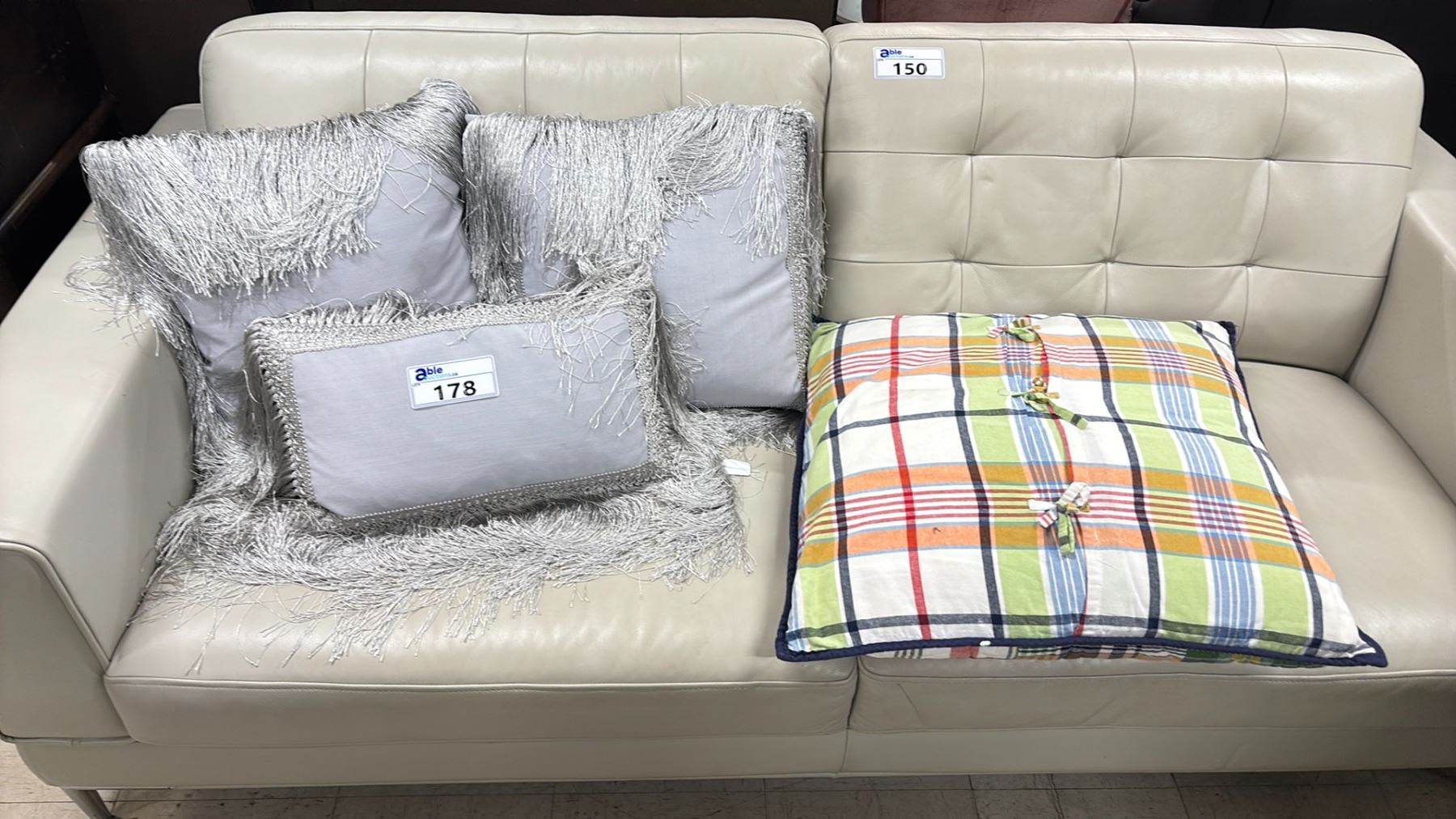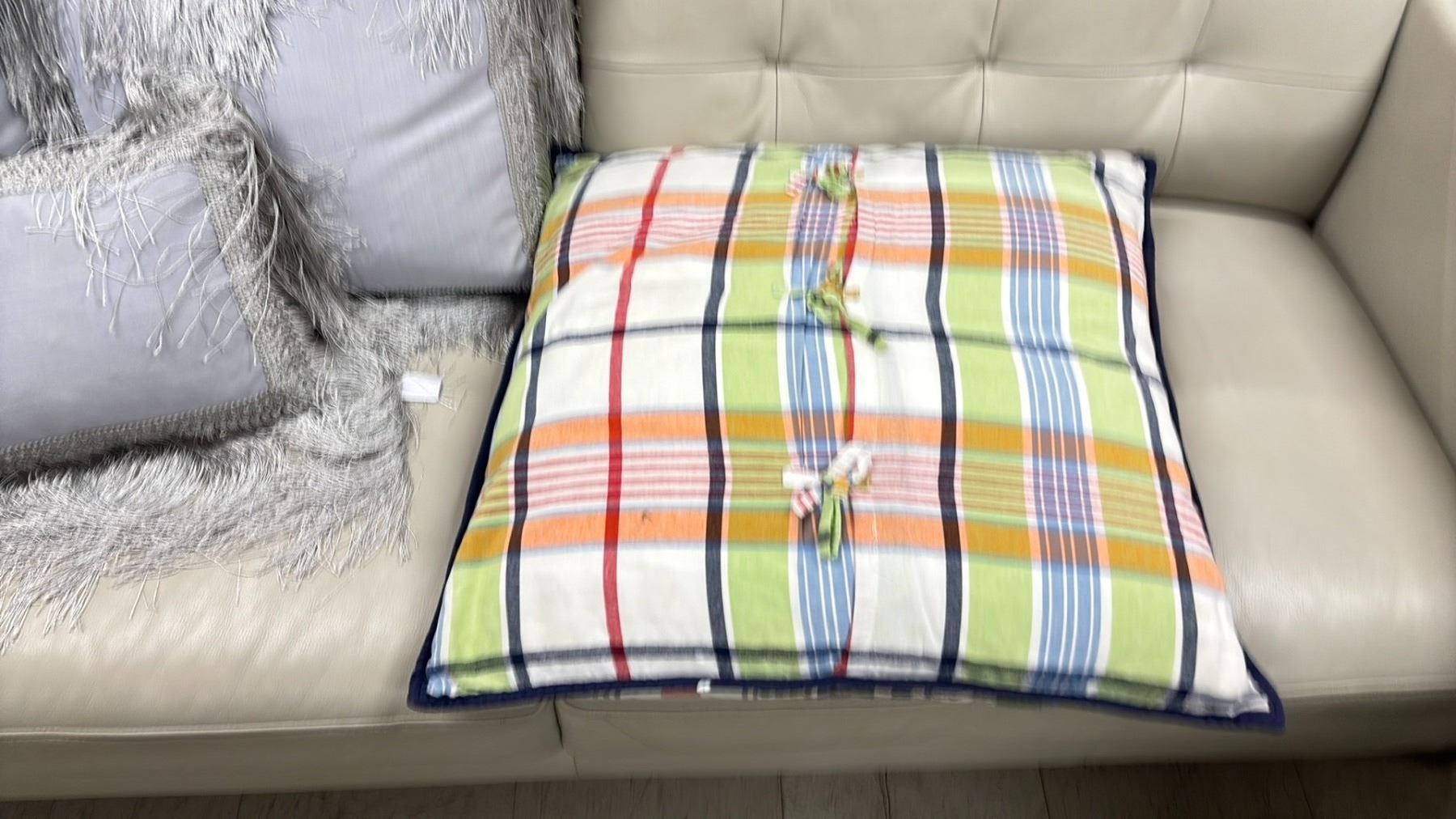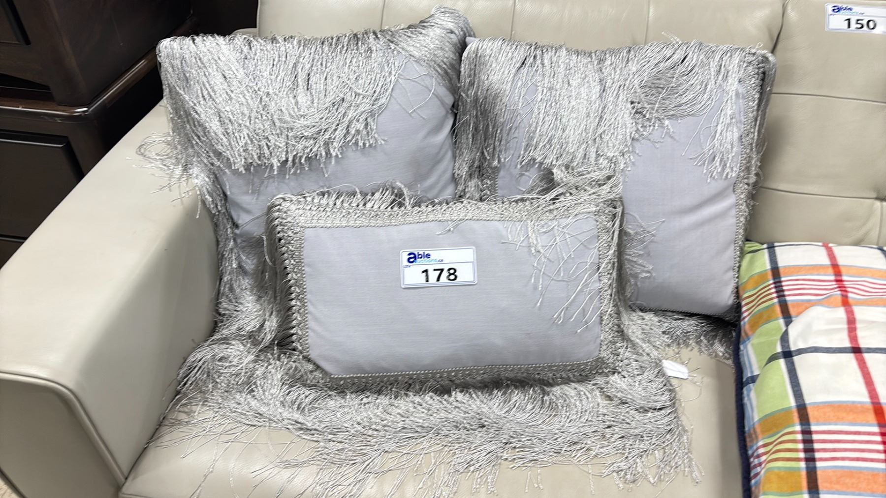 3 SILVER FRINGE PILLOWS & A PLAID THROW CUSHION