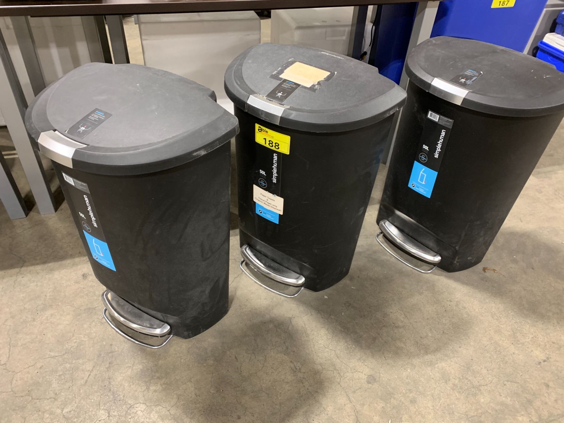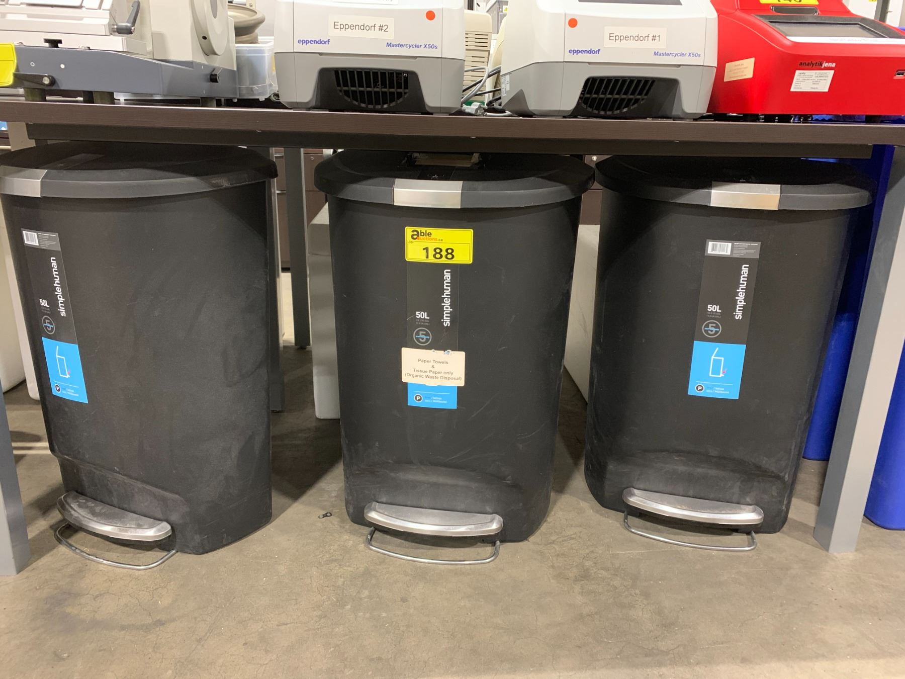 3 SIMPLEHUMAN 50L FOOT OPERATED WASTE BINS